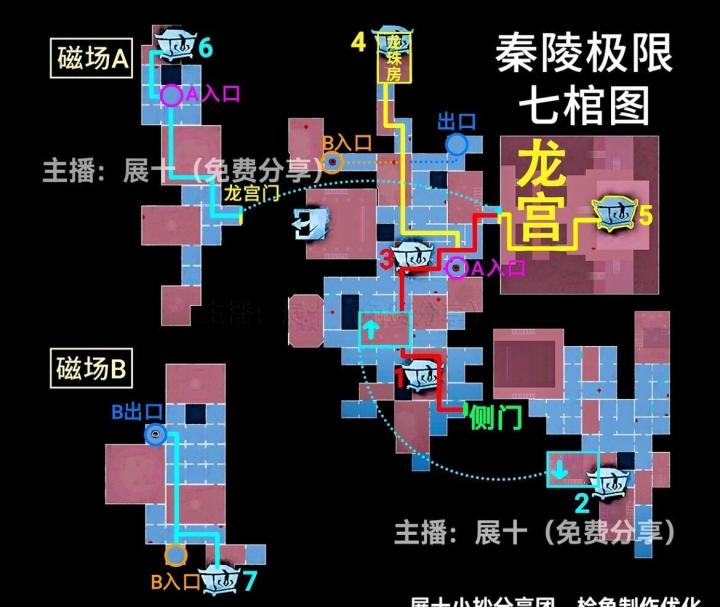 秦陵龙宫极限小抄,除雾,去磁场(侧门左、右)地图。