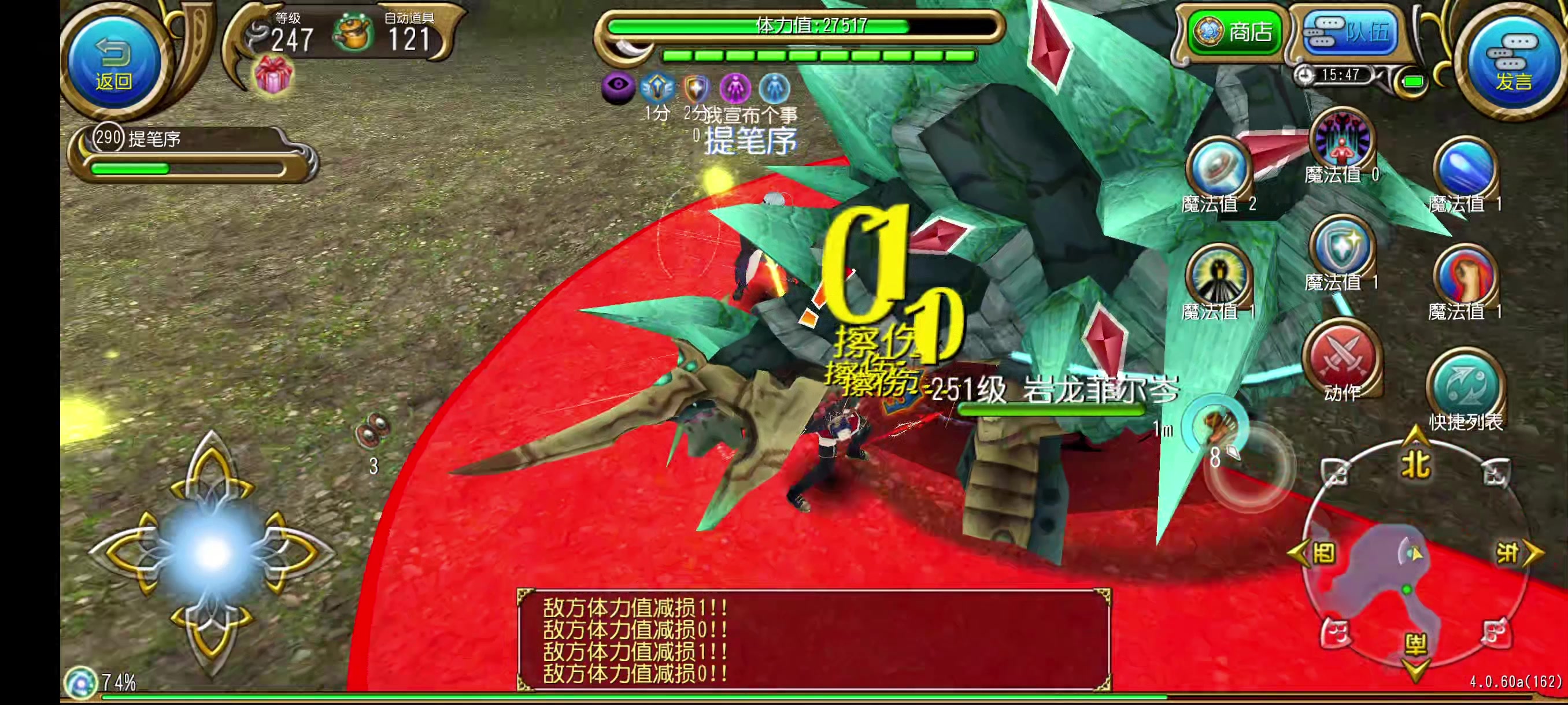 行动模式——1,物理攻击,大长条翻滚,附带红翻覆,段数在1-4段中随机,是岩龙这辈子最爱的技能,一滚起来就发狠了忘情了,有控制的话可以狠狠的控制他