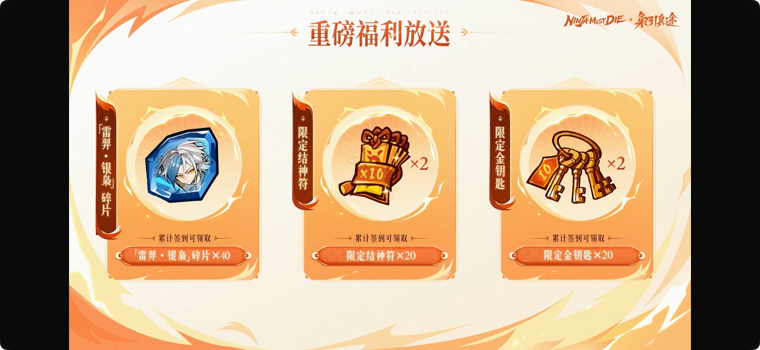 6.福利:分享3日送银枭老流派,签到送20符+20钥匙+40新流派银枭碎片