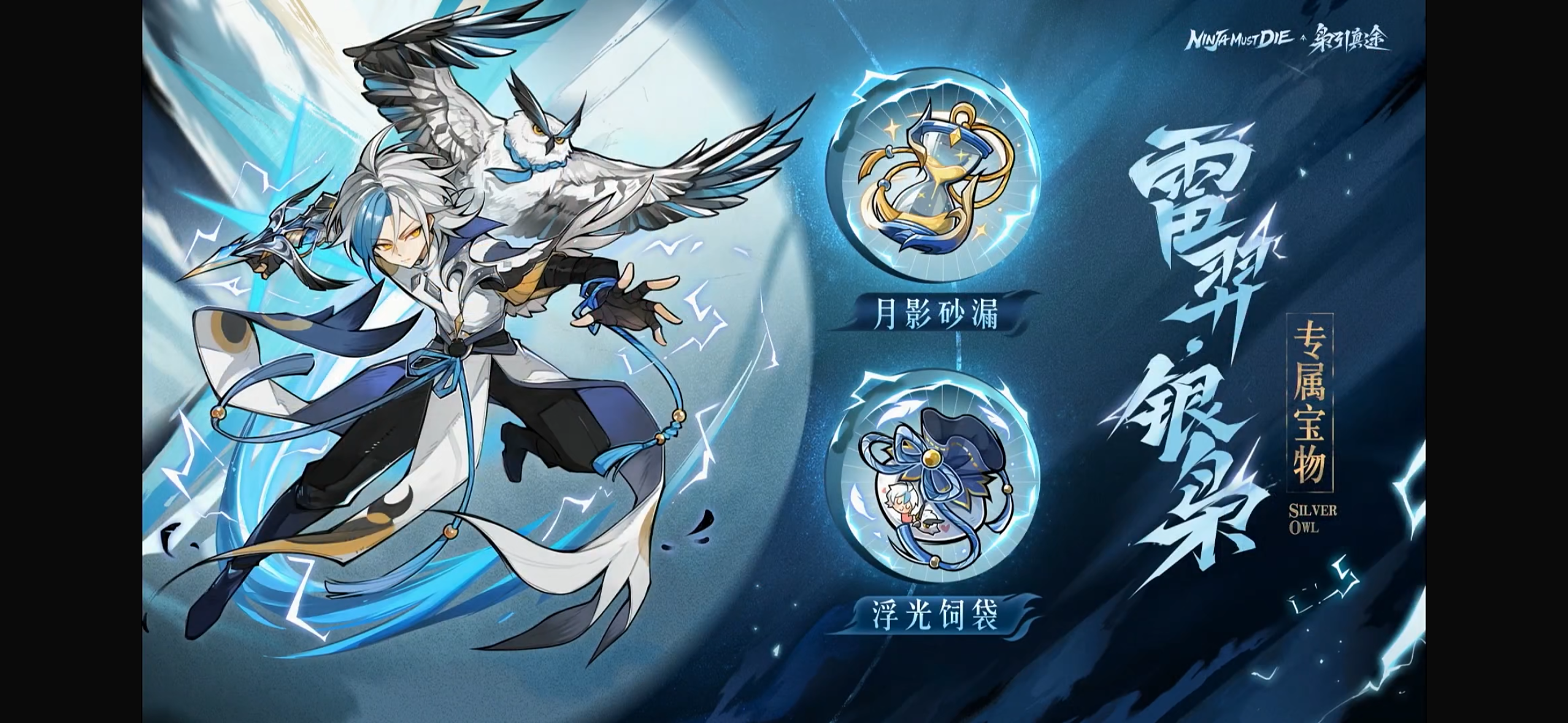 矢雷:雷枭发射大量雷羽攻击,银枭发射雷箭,引导未命中的雷羽对敌人进行追踪打击,同时雷箭还具有定身效果