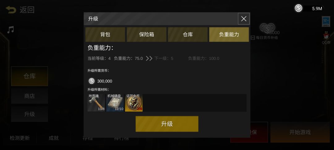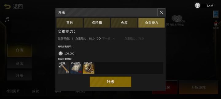 摸金升级:负重能力