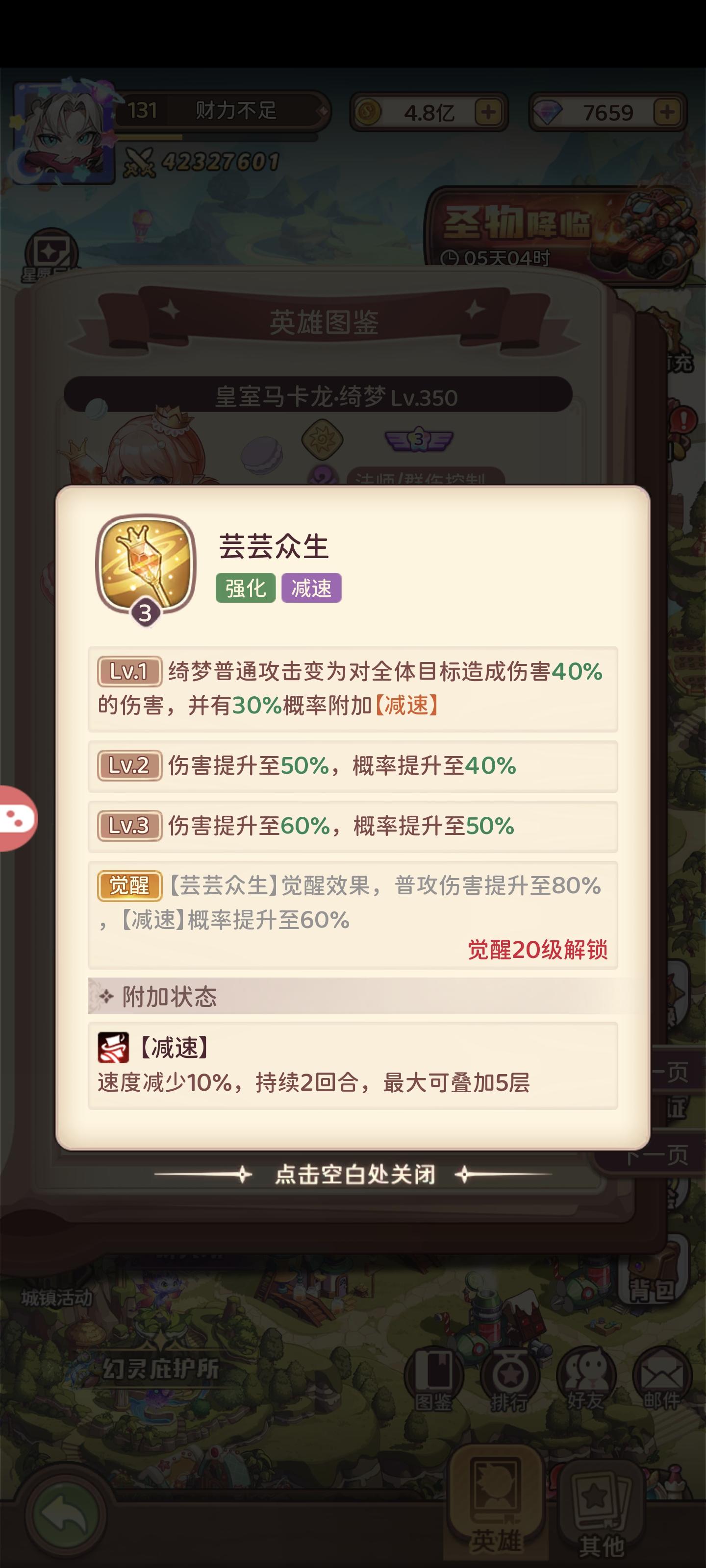 被动技能1 普攻变为全体普攻 并且概率附加减速效果