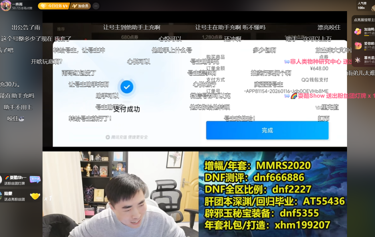 主播杨sir准备几百万点券购买新春套,壕无人性