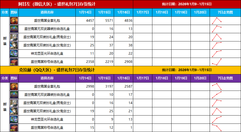 【盛世霓赏】上线第3天价格依然不稳定-专题物价统计(1月16日)