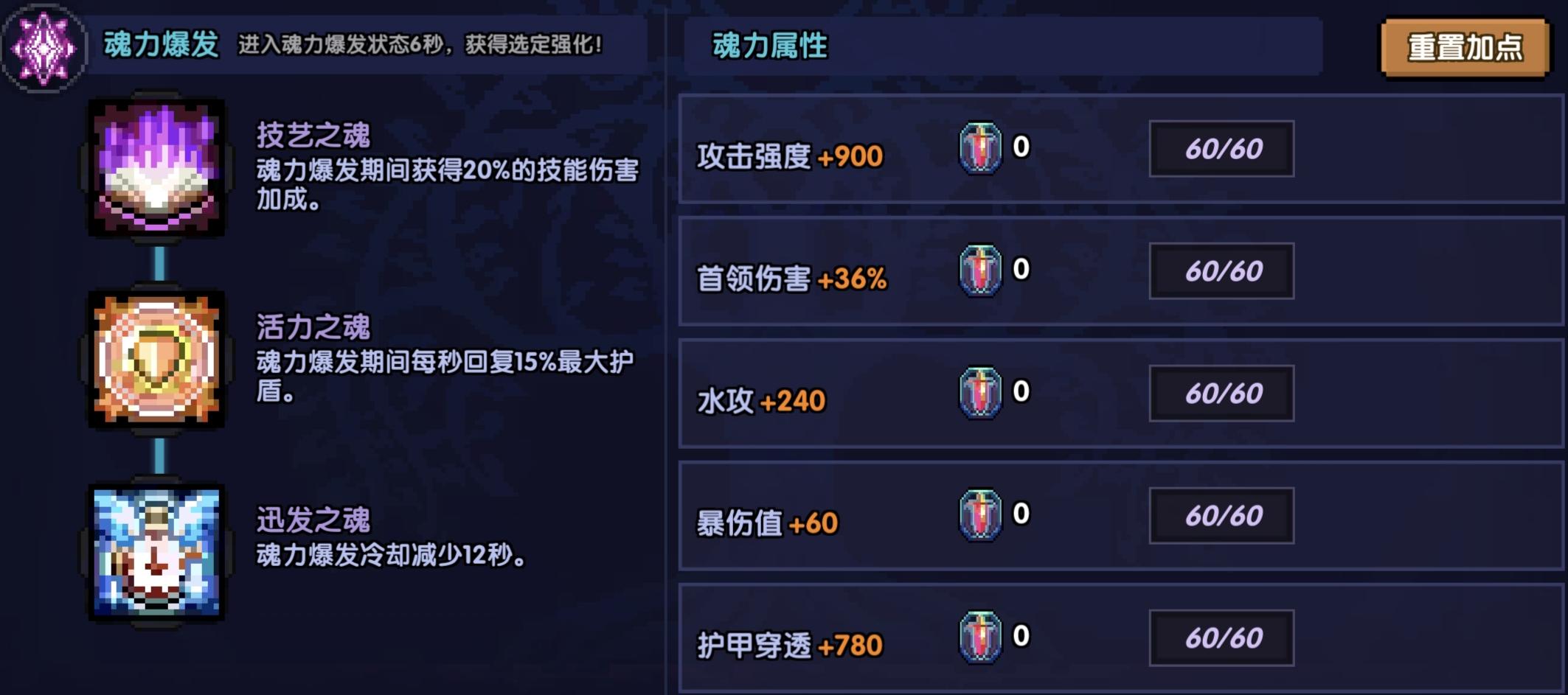 优先满足护穿和暴击需求,再点满首领、爆伤值、水攻,剩下点攻强和无限攻强即可
