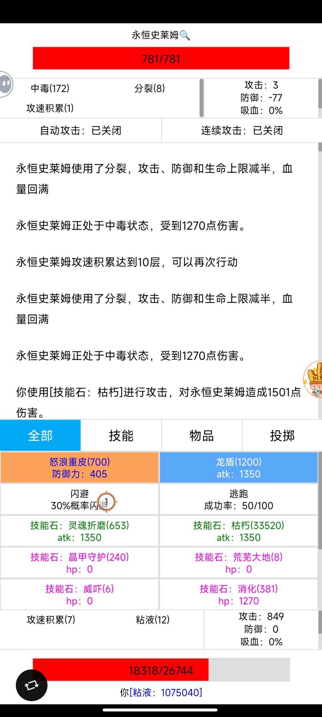 永恒史莱姆 无脑枯朽直接打死 免伤套