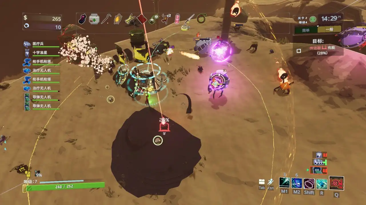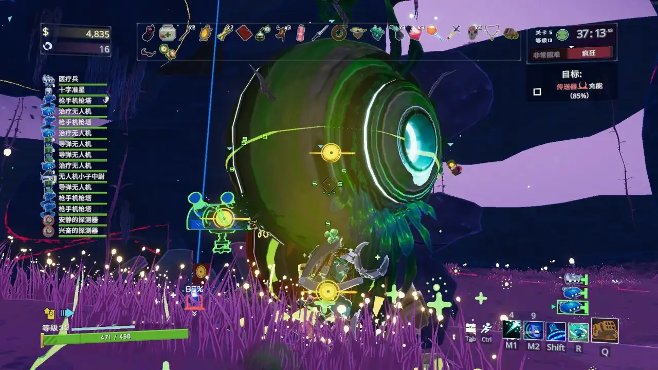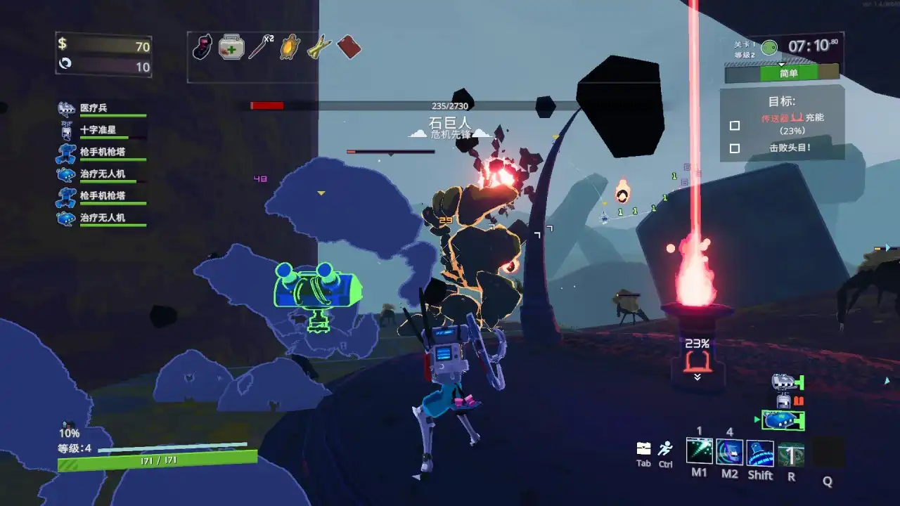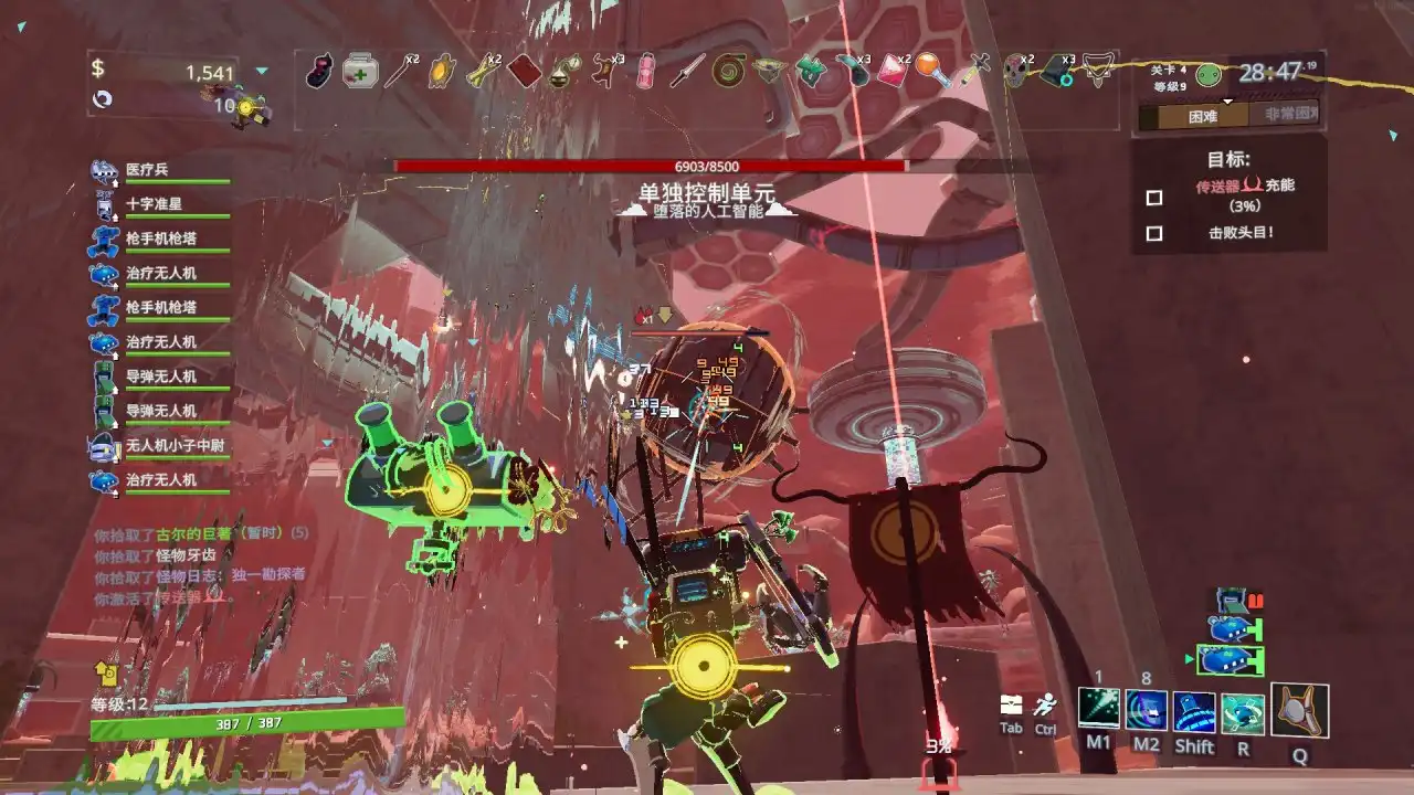 关卡对应的敌人特色设计的也很应景,比如有个BOSS叫单独控制器单元,其实其在设计上也有一定的“无人机”元素,并且击败后还有可能获得全新道具“共情核心”,拾取会有两个“单核探测器”帮你攻击,操作员狂喜!