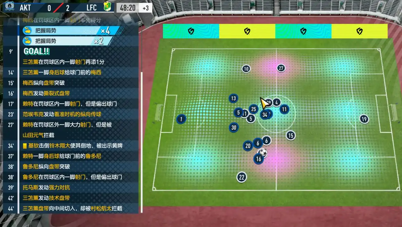 个人感觉游戏的一大乐趣是可以观看自己的球队和其他球队进行对战。游戏的局内对战十分真实。闲来无事时看上这么一场球场上从未出现过的球局未尝不是一种美事。如果你只想看结果的话,也可以选择跳过或加速比赛。