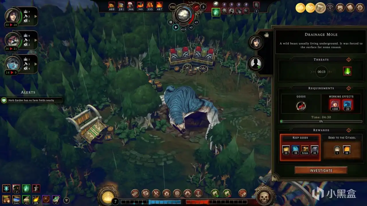 6.食物不够怎么办,种田食物不够不要把你的食物来源只依靠小农场香草园。先检查人口是否过多,其次开地找事件,或者采集。有人说采集效率大于种田不是没有理由的,种田也得会种才行不是开个田塞两个人就不管不顾。
