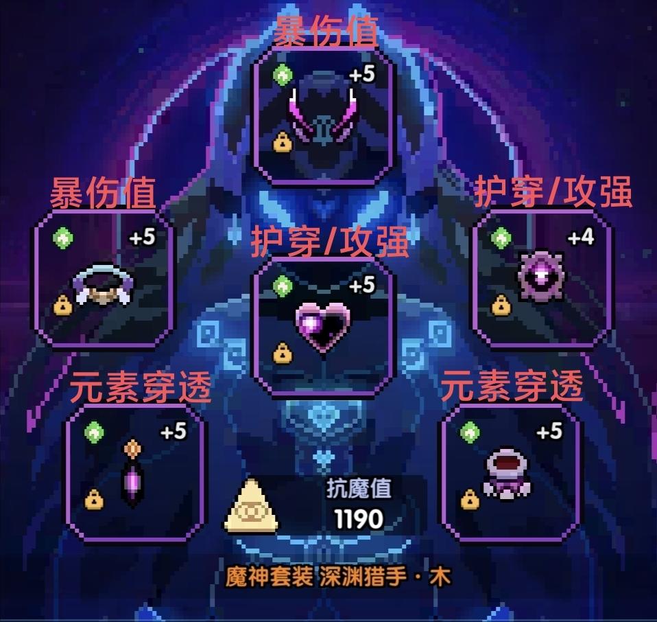 副属性:元素穿透;木攻/暴伤(木攻4个暴伤5个)