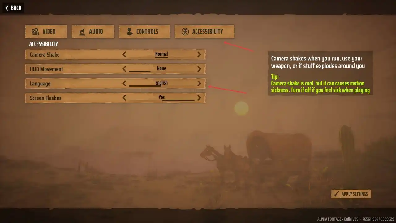 总体玩下来,《遥遥西土》还是挺好玩的,建议喊上几个好朋友一起开黑。第一次进入游戏默认是英文,大家可以点击“ACCESSIBILITY”,在“Language”中选择中文:
