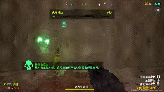 打败 BOSS 后我们就可以来到撤离点撤离了。找了半天没有发现可交互的按钮,于是用枪射击了一下头顶的的大铃铛,果然开始计时了!接下来就得死守撤离点,等待火车的到来。