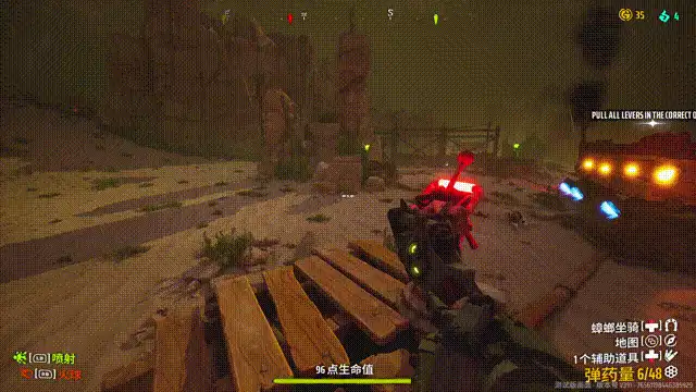 游戏中的玩法也挺多的,比如我这个对局的主题就是“推车”模式。首先需要完成一个解密的操作,把所有的拉杆按照游戏中设定的顺序依次拉下。这个我没有看出规律,所以是一个个地尝试: