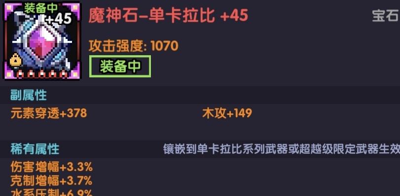 副属性:9元穿,6木攻3爆伤,7木攻2爆伤。木攻可以适当洗多一点,不过还是哪个更接近最高值用哪个