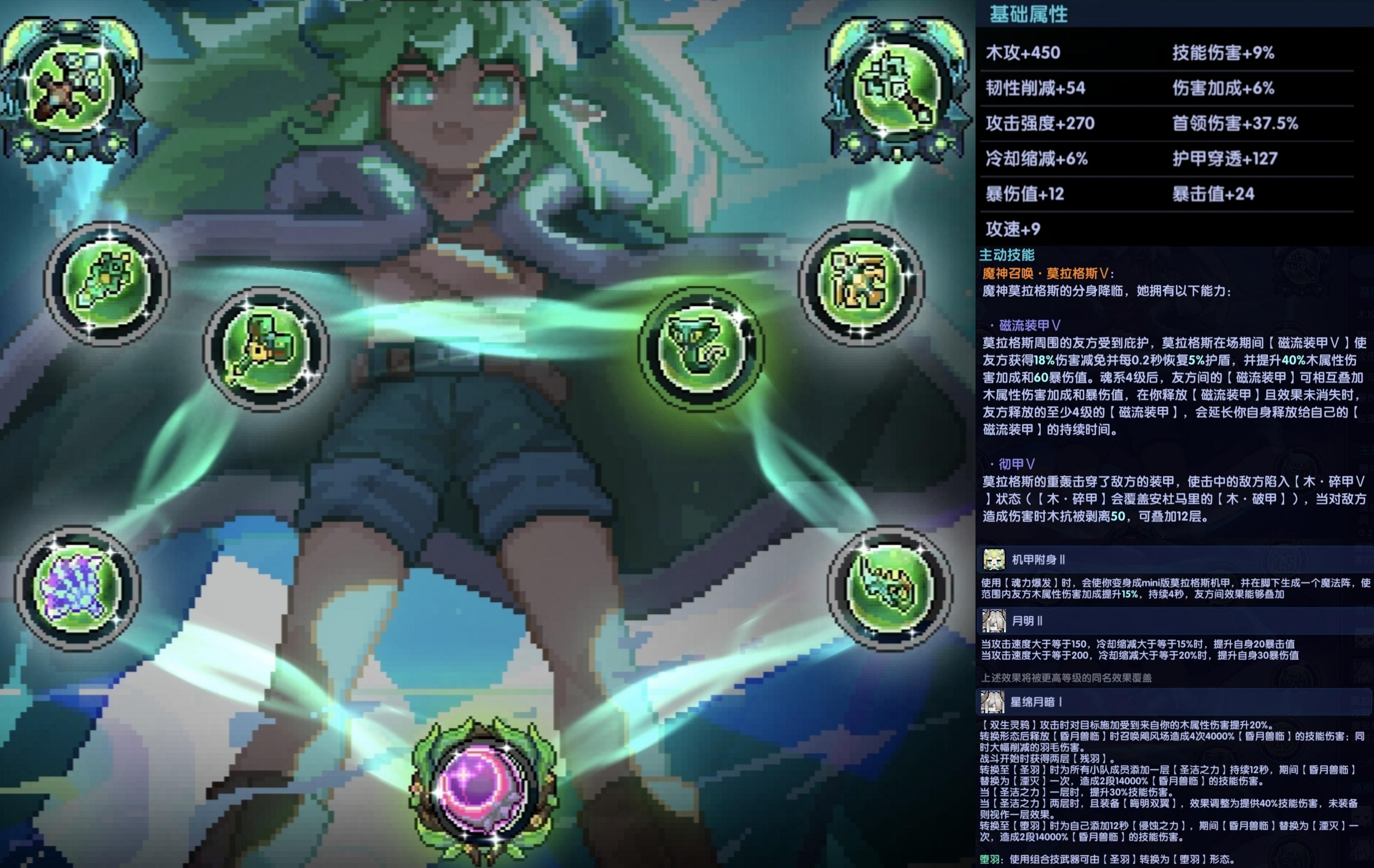 属性方面先点首伤、护甲穿透、暴击值后点爆伤、木攻,攻强和无限攻强8:3分开点即可