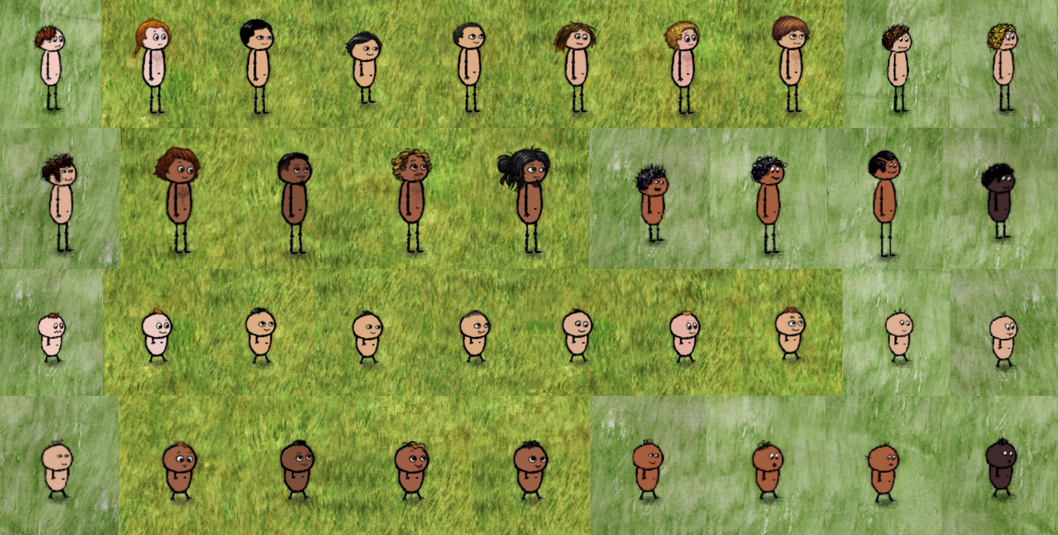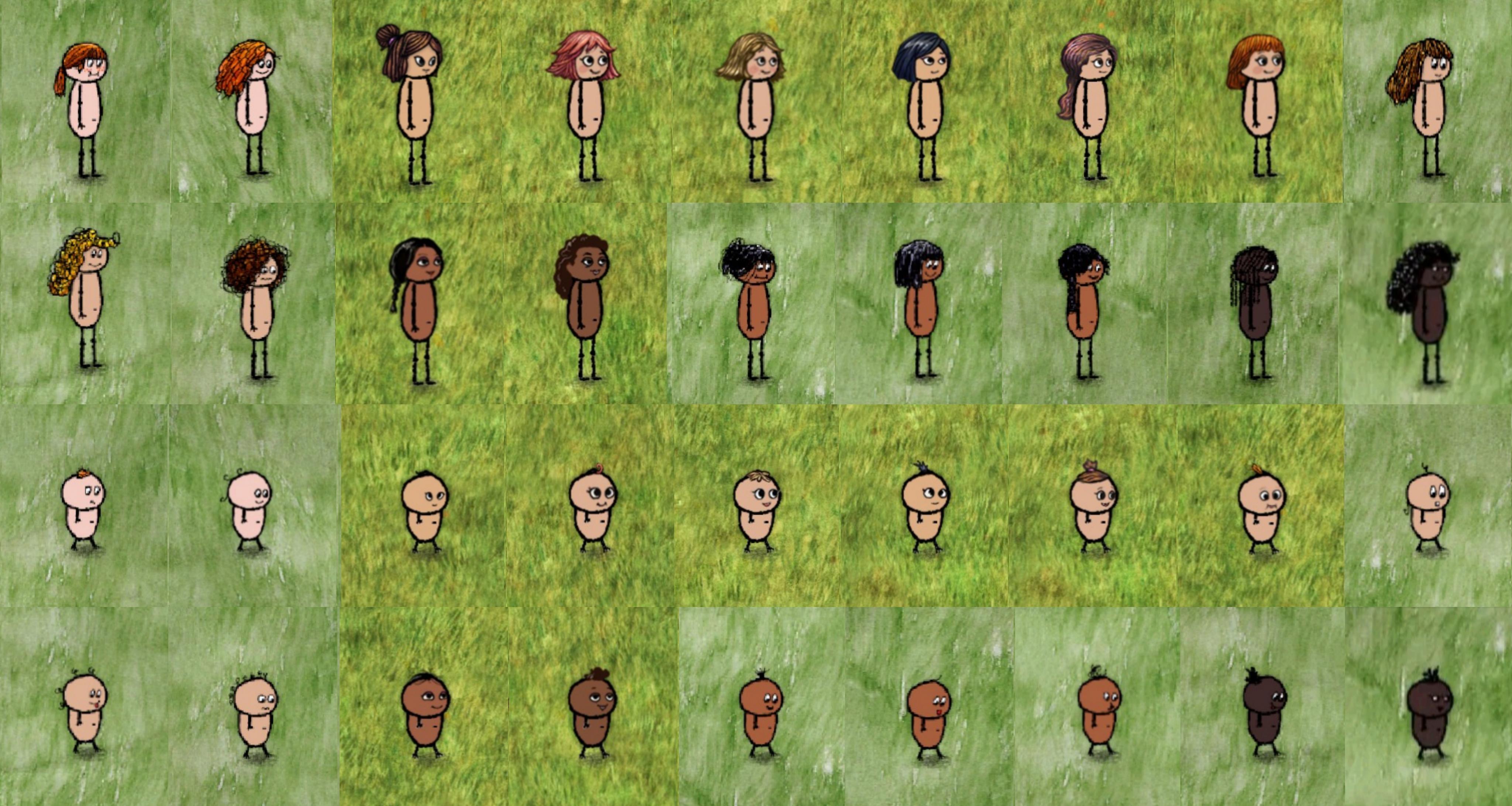 下面就是全人物形象了,我尽量找到他们的名字,以及ta的民族(原版那的人物就叫原版毕竟都是外国人,华夏这边的不知道民族的就算汉族了 很多人物只有编号,没有名字的,编号或名字后面的字母或者甲乙丙是官方用来代表肤色的)和部分由来,会包括几岁变换形象,