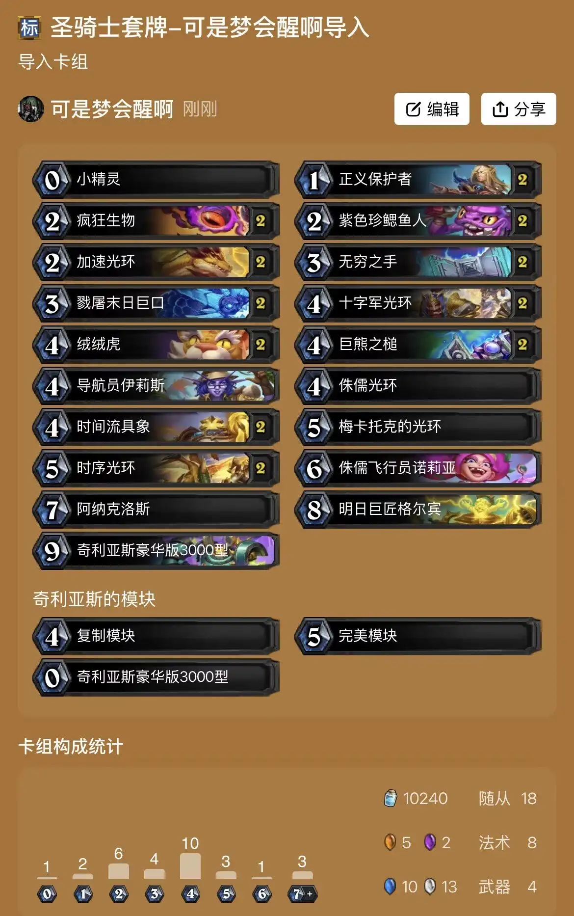 卡组代码:AAECAfHnBwjHpAbh6waCmAfuqAfvqAfwqAfrrAeKsQcLyaAElfUF0akGtfoGyP8GupYHy6kHxK4HvrIHv7IHwbIHAAED9bMGx6QG97MGx6QG7t4Gx6QGAAA=分析:本次更新骑士获得了加速光环配合紫色珍鳃鱼人,可以保证我们前期快速跳费进入格尔宾的回合此外,末日巨手和无穷之手可以保证前期节奏和场面不崩。本次迷你包将原本比较卡手的光环骑变得更加丝滑。