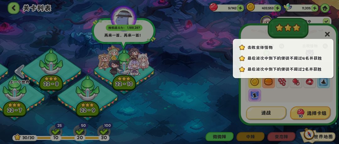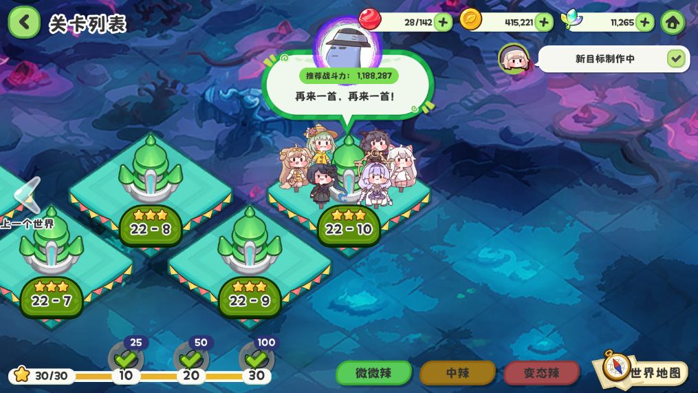 - 玩法本质:这是游戏的核心推图玩法,分为 微微辣、中辣、变态辣 三种难度。首次通关奖励最为丰厚。