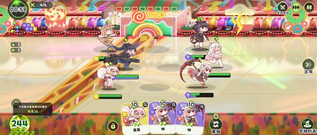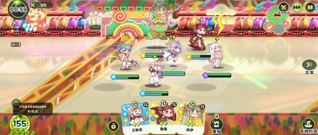 - 阵容侧重:在第4回合投资时,应优先确保阵容的生存、续航与输出能力。考虑薇薇(护盾)、优米(治疗) 等角色,以确保最终战的存活率。