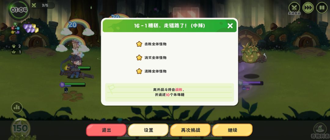 - 兜底重开:离开战斗判定战败,并返回10个珠珠糖🍬