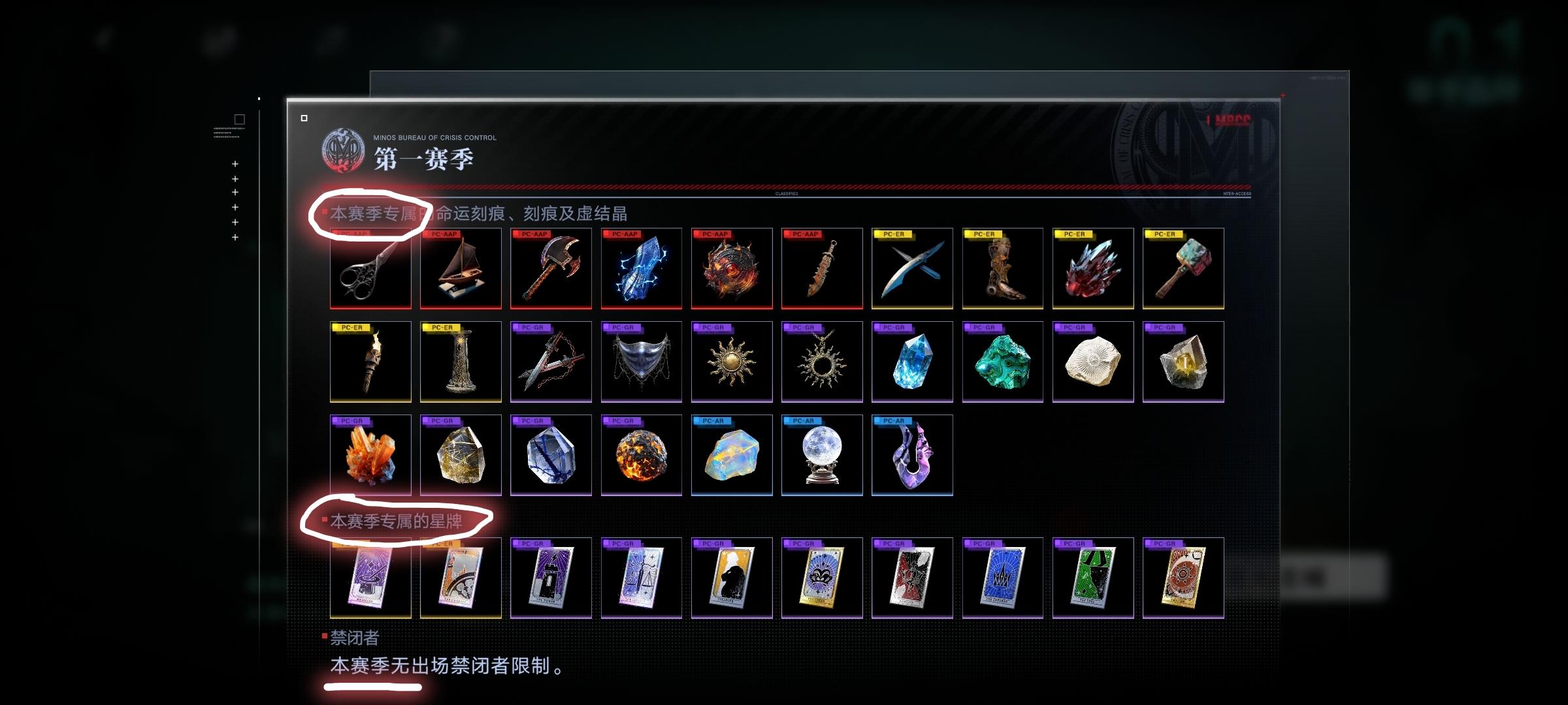 ·命运刻痕、刻痕、虚结晶、星牌、出场禁闭者,全部都有赛季限定!!!