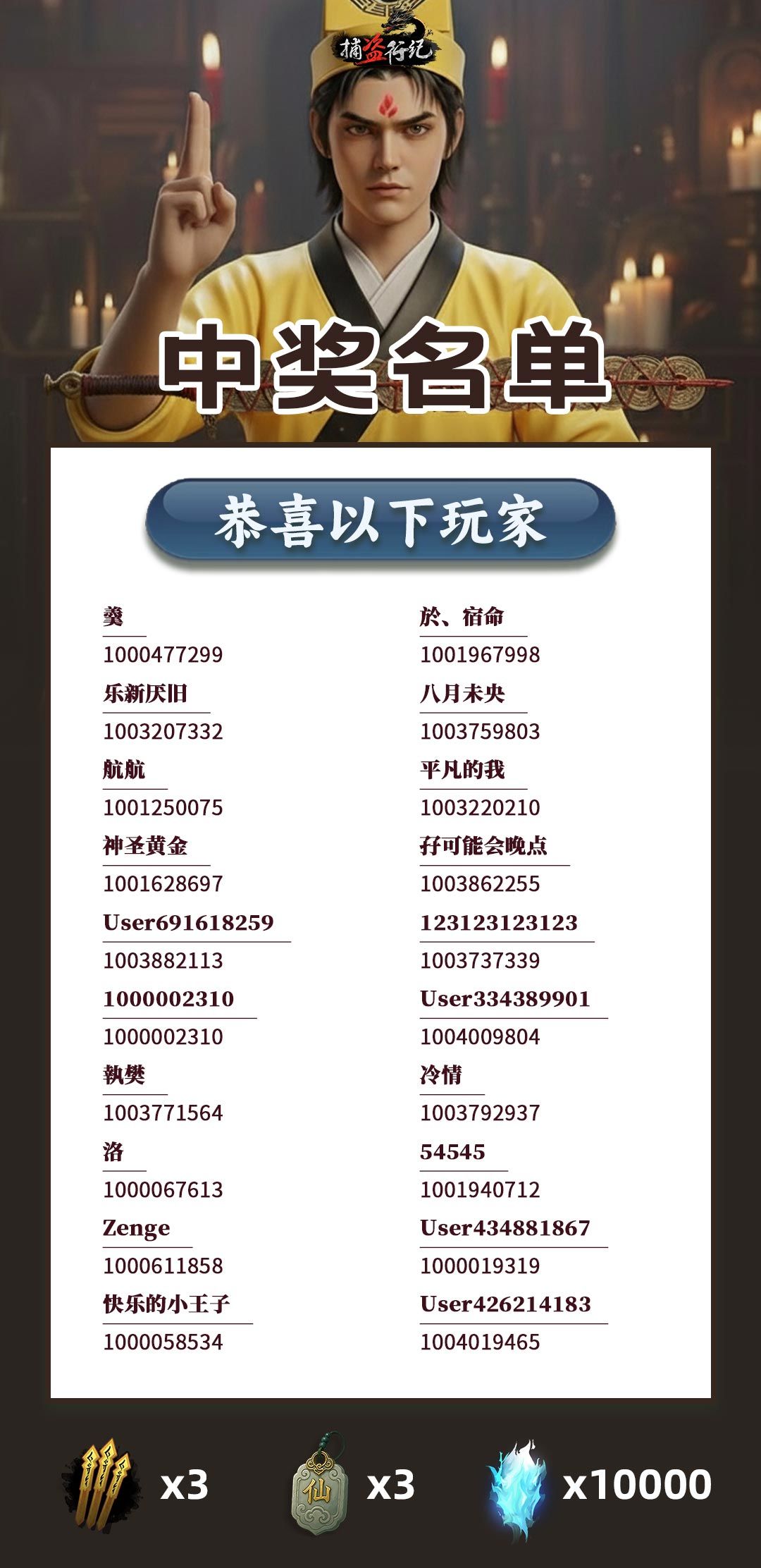 再次恭喜以下获奖的小伙伴,也祝大家游戏愉快!