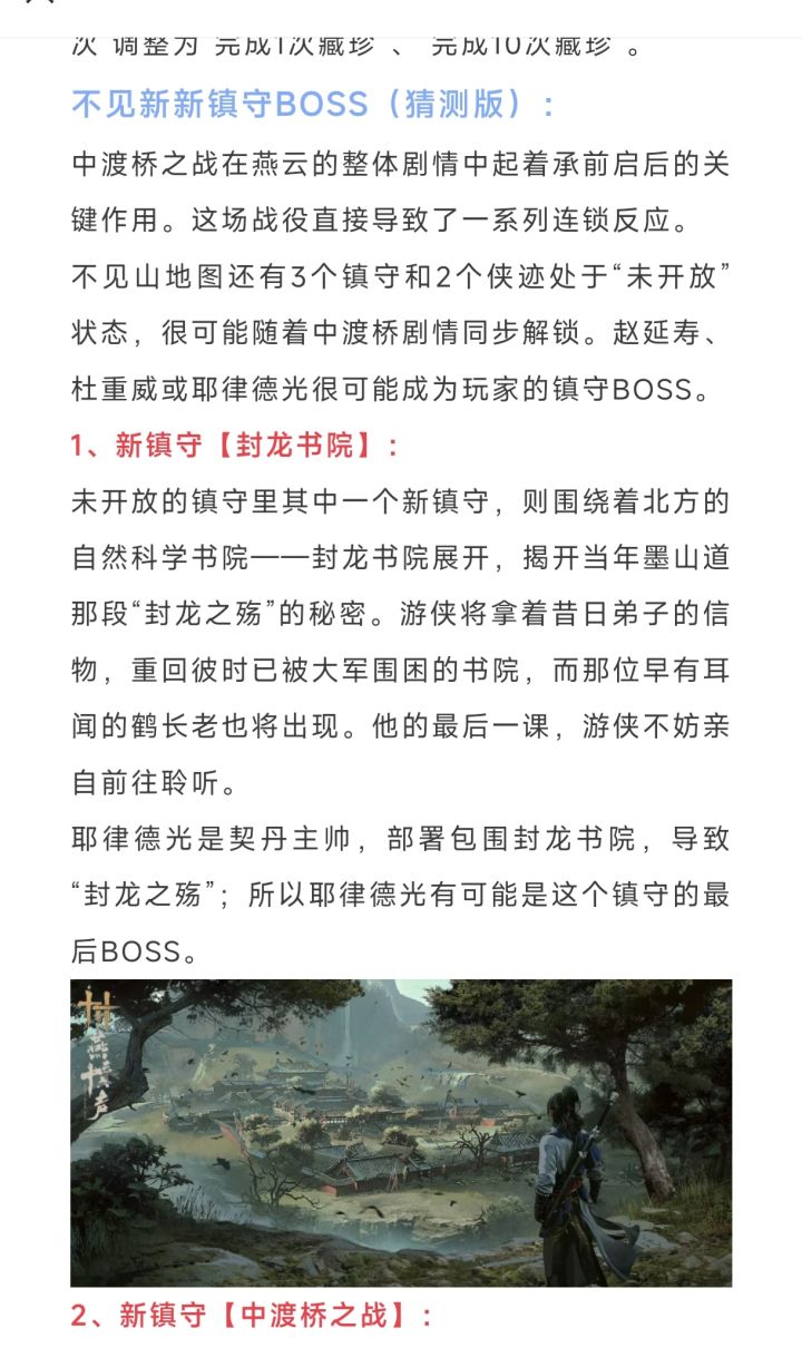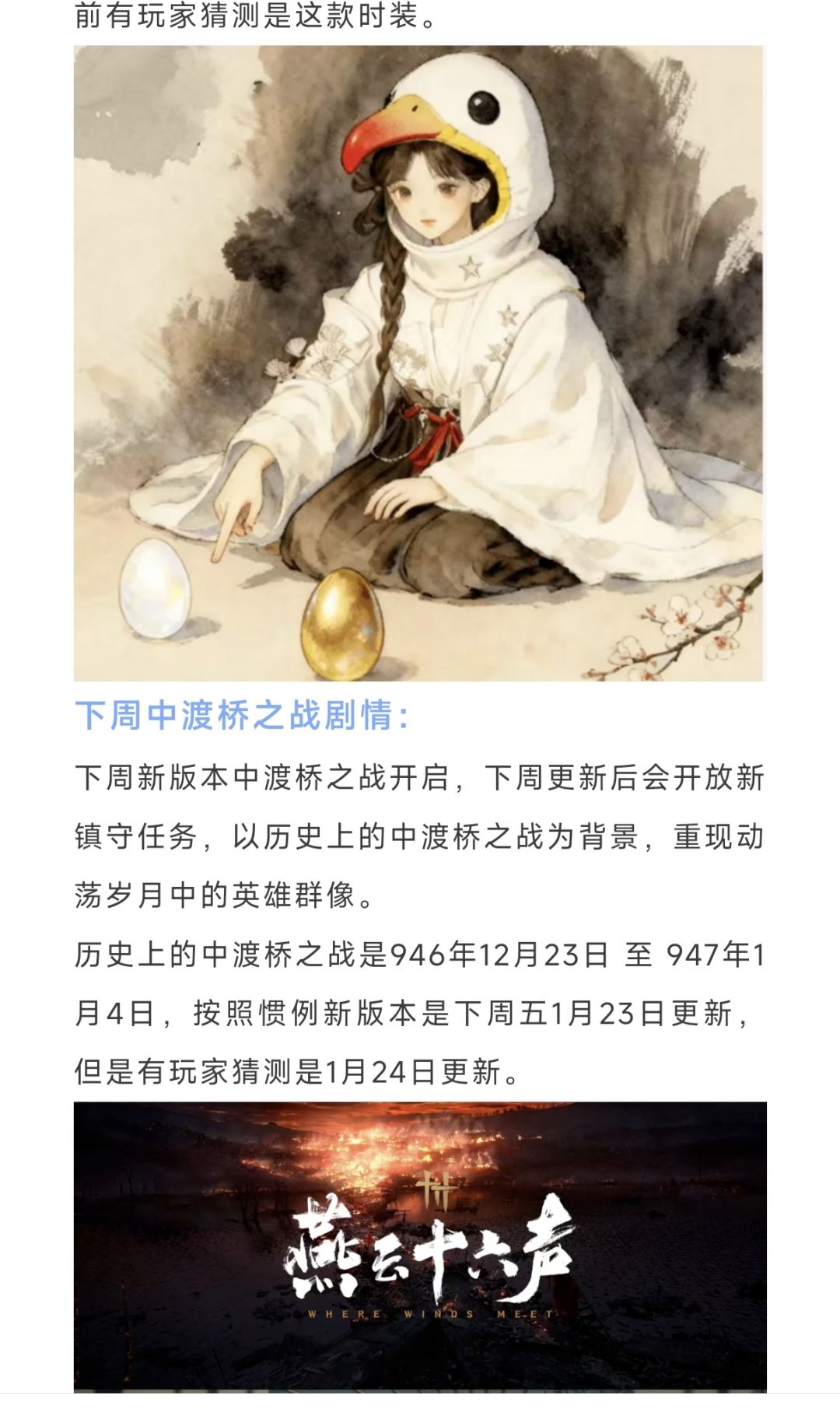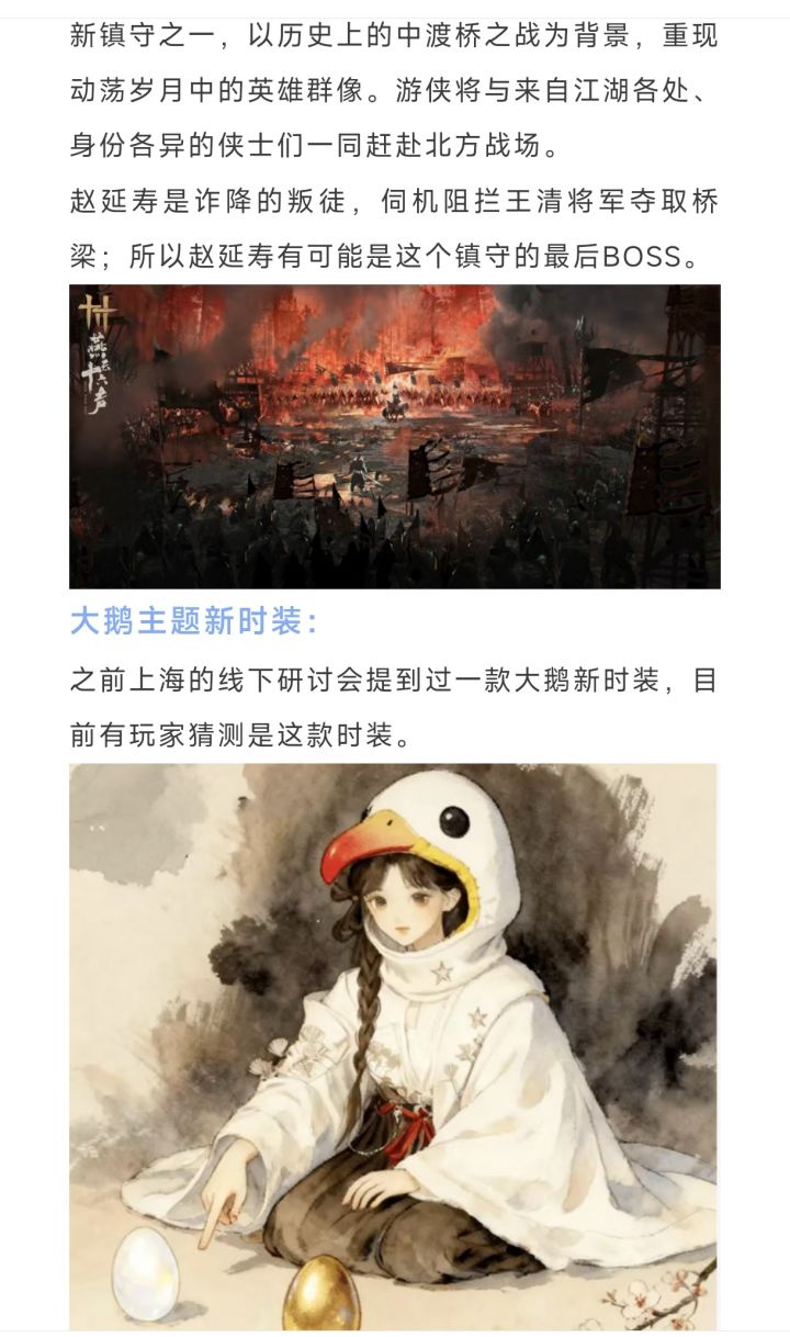 燕云十六声下周中渡桥之战剧情,不见山2个新镇守BOSS,大鹅新时装,新镇守【封龙书院】!