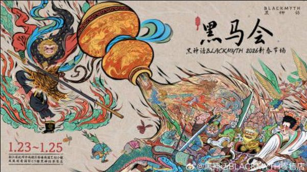 《黑神话:悟空》官宣2026新春节场【黑马会】线下活动,1月23日至25日将在杭州与玩家相约,提前解锁新春庙会热闹氛围。