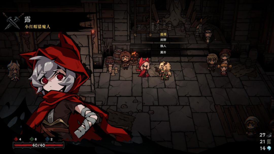 营地里的复活修女能用蜡烛解锁和强化局外养成,复活次数和装备上限的提升最实用。四个角色就对应四个营地方位,想换哪个靠近对话即可。开荒推荐远程角色,虽然慢一点,但稳妥又安全。除了修女,营地里还有两个功能NPC,需要完成任务才能解锁。