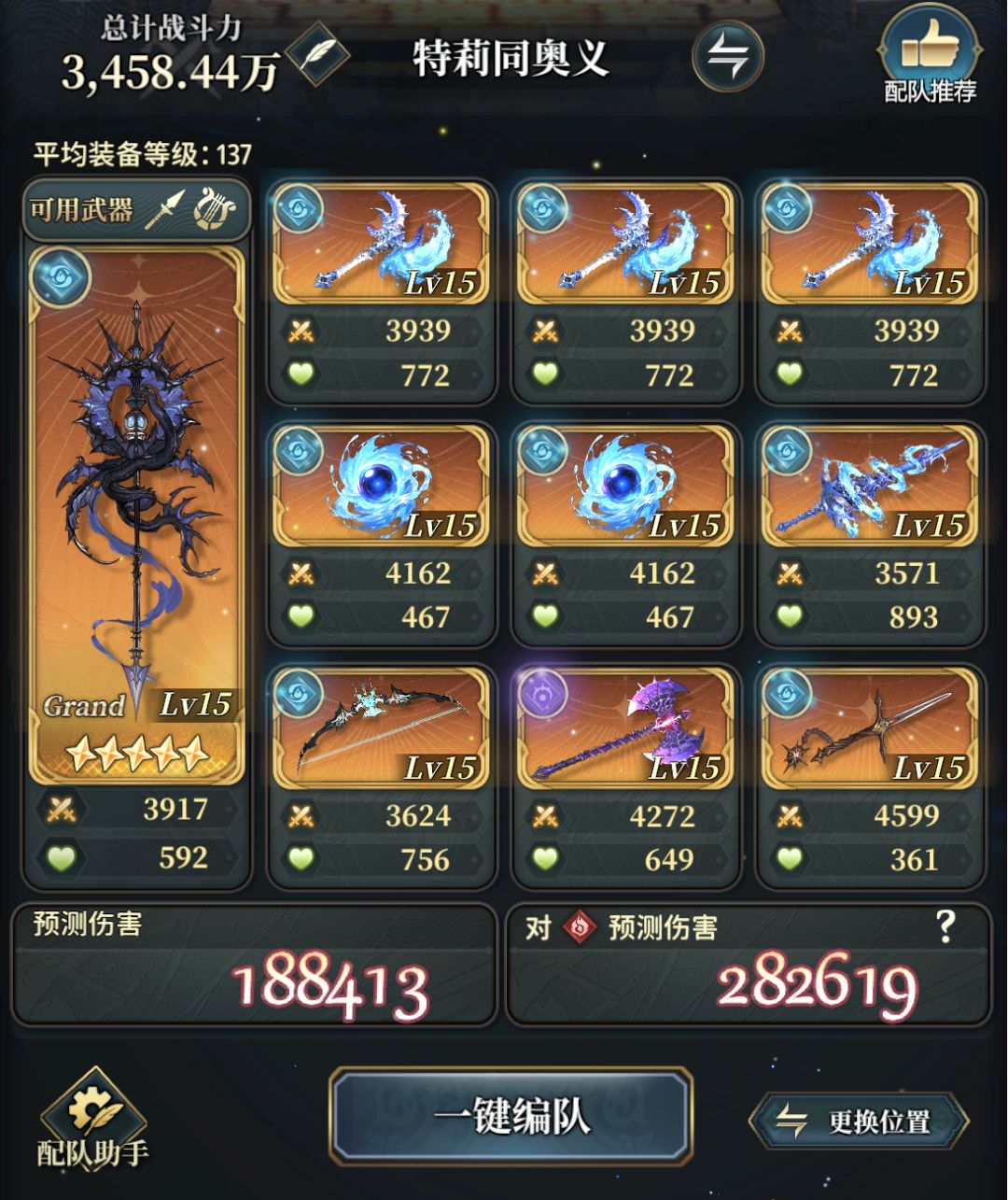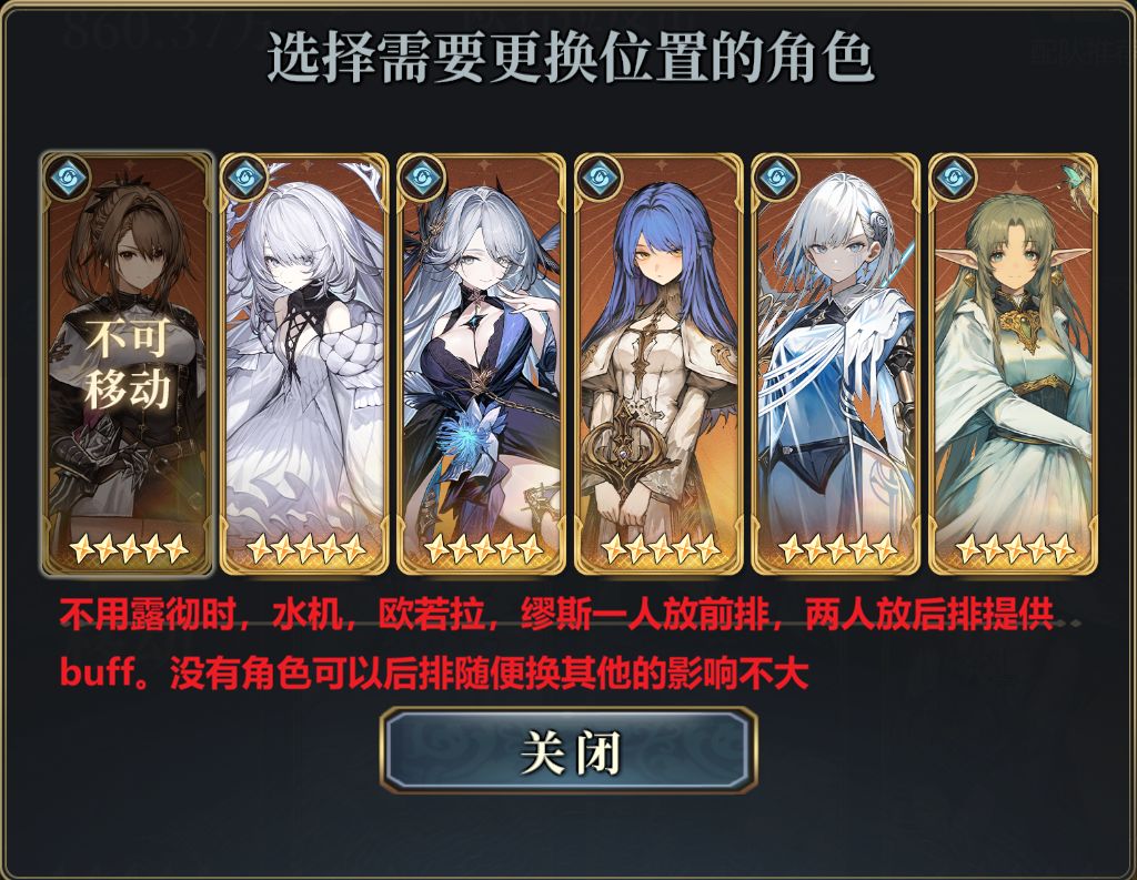 由此,我们可以明确,不可替换的前排只有艾丽娅+奈法,选用先锋主是因为其伤害很高且提供全队暴击和驱散,且还能使用长枪魔武作为主手,魔武提供攻防buff、碧波之契层数和附魔的额外效果。而剩下的一个前排位置选项很多,露彻、水机、欧若拉、缪斯均可。