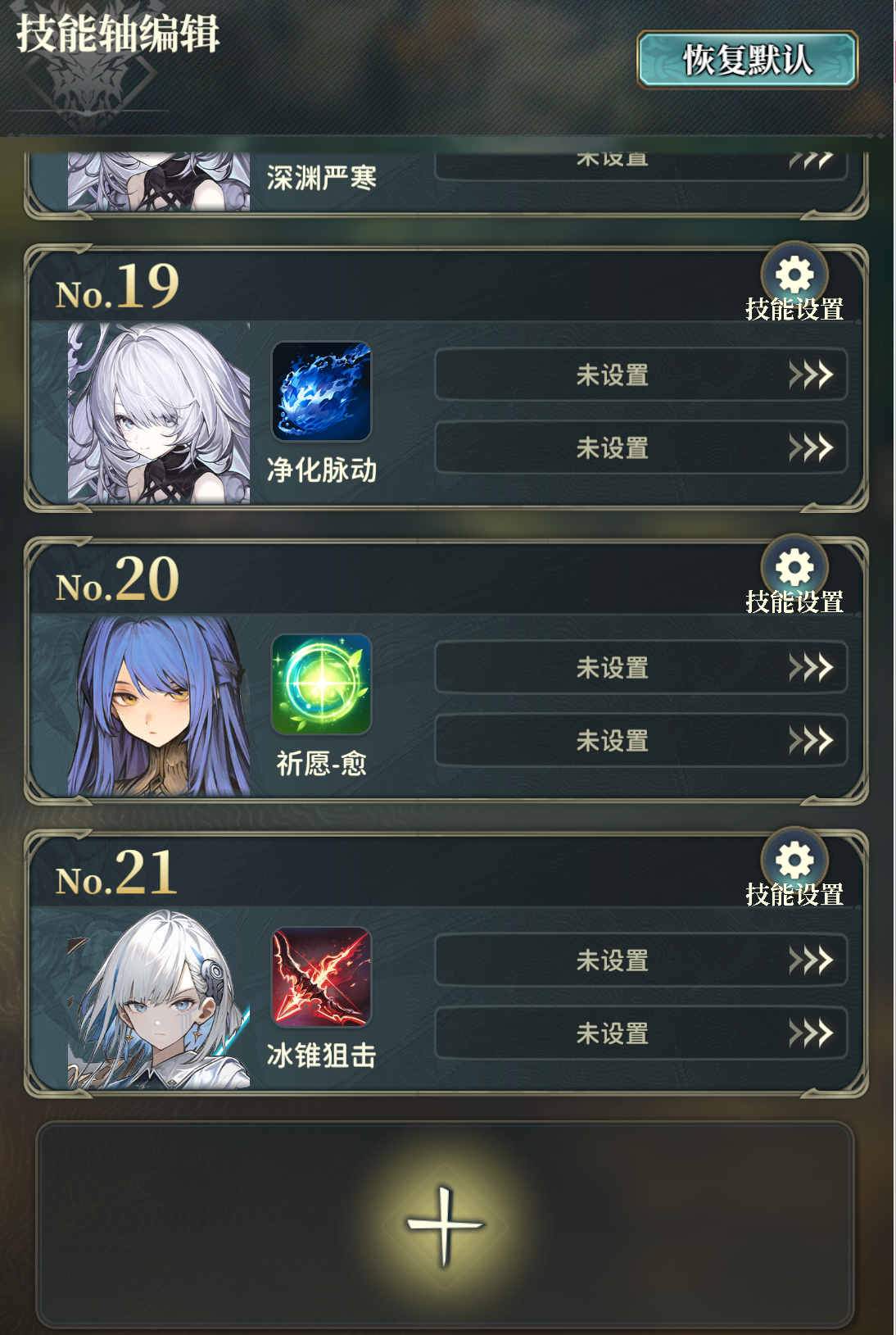 其他技能轴细节主要是艾丽娅先净化再放其他奶防止虚空化禁疗,艾丽娅刷新cd后再次释放1、3技能增加输出,欧若拉乱击别在奥义回合开,主角和特莉同援护不放防止暴毙。