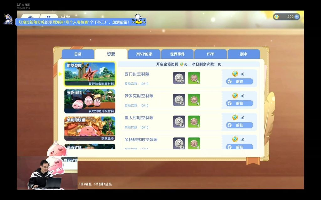 时空裂隙每天能开10次宝箱,拿装备附魔、宠物升级材料。