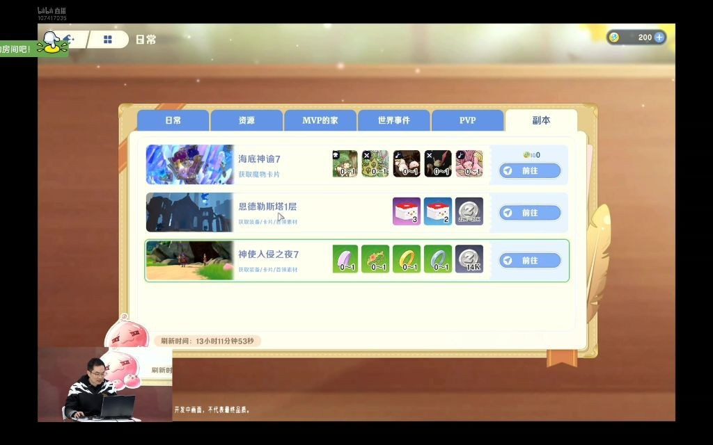 周常副本:海底神谕(拿魔物卡片)、恩德勒斯塔(装备/卡片/材料)、神使入侵之夜(首领材料),每周有限定参与次数
