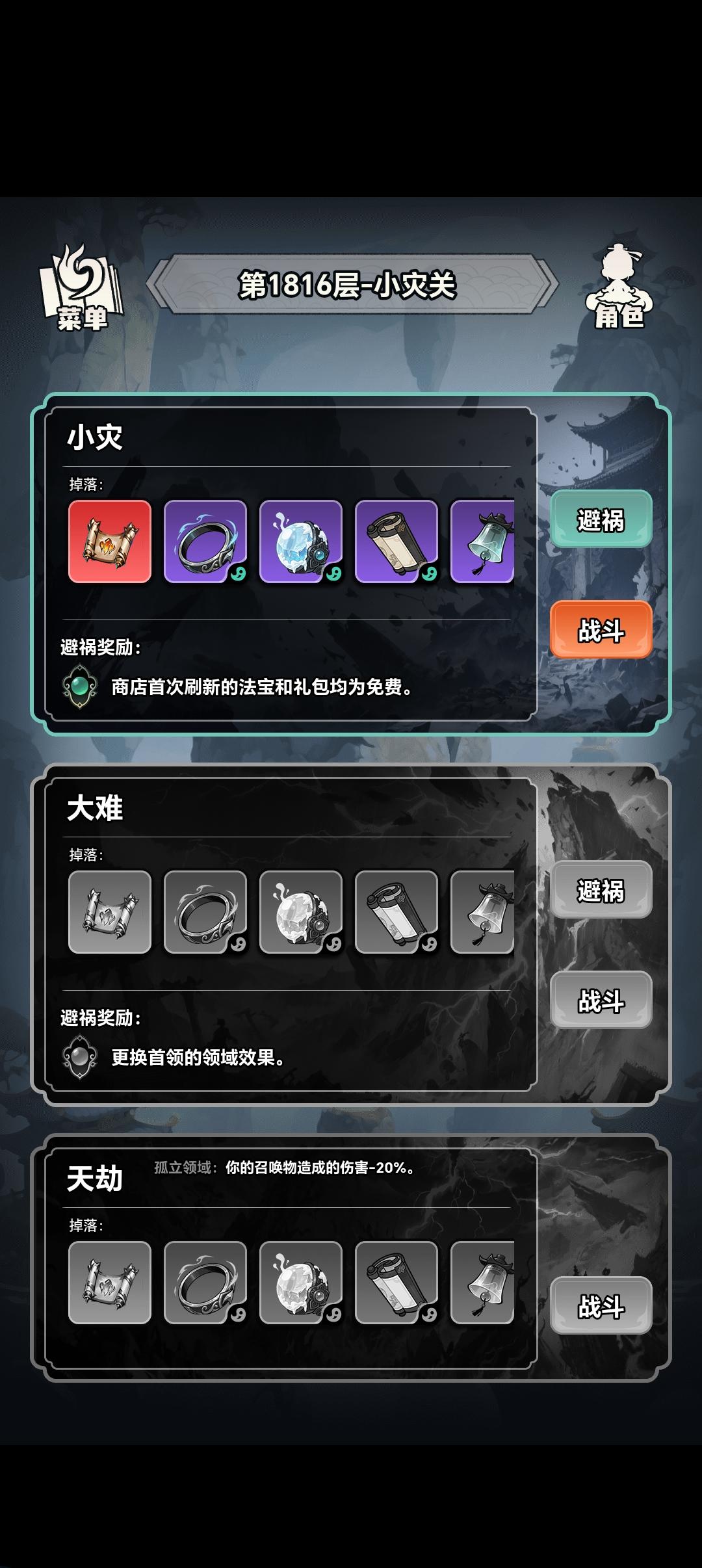2 前期进图钱不要用花 多攒一点商店更容易刷出高品质法宝 然后注意怪物的避祸属性 遇见图2这种商店刷新免费购物存一下档直接四五件混沌装 当然天道礼包要全拿 +法宝装备数量和礼包数的优先