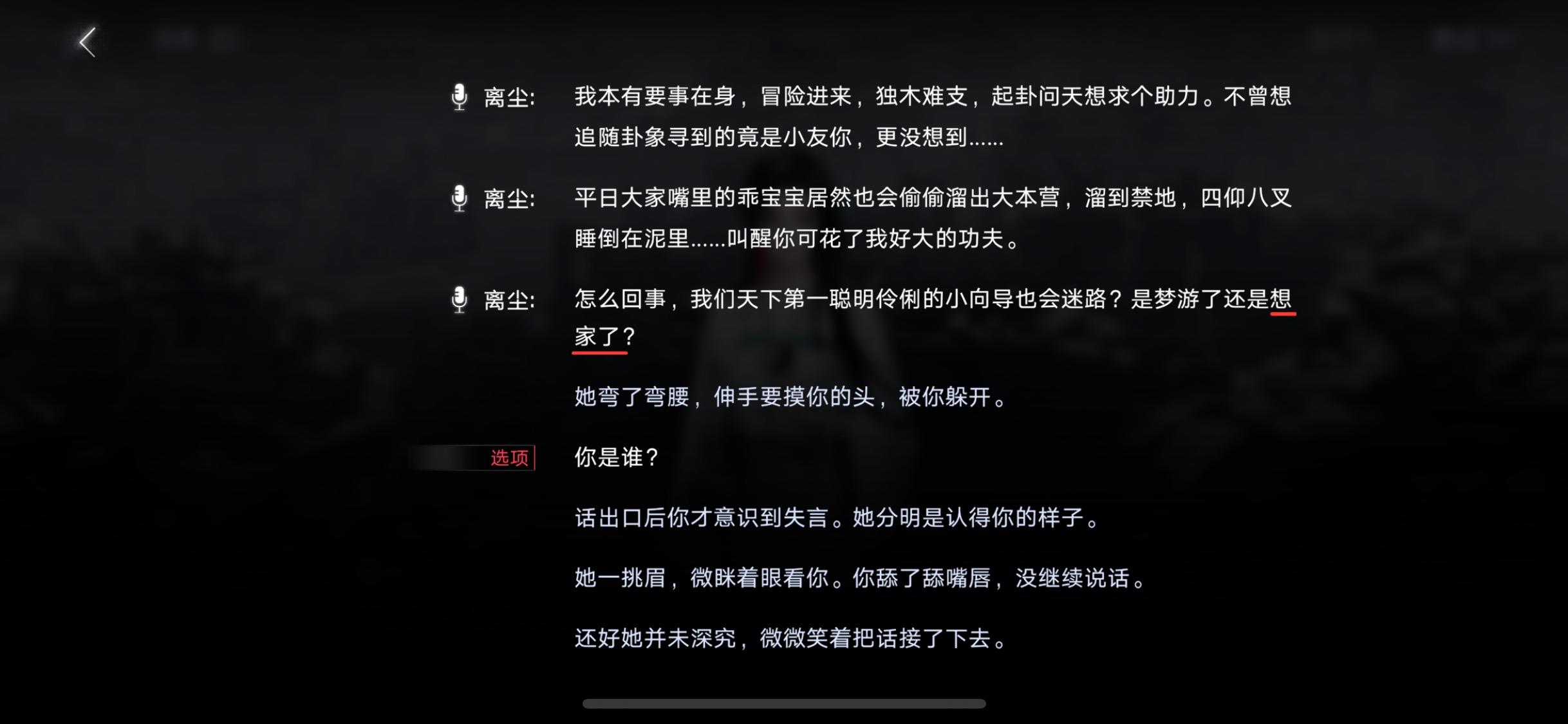 既然是向导不在场的情况,这个回忆就有可能是之前发生的事,因为离尘可能不是第一次帮向导进出阴墟