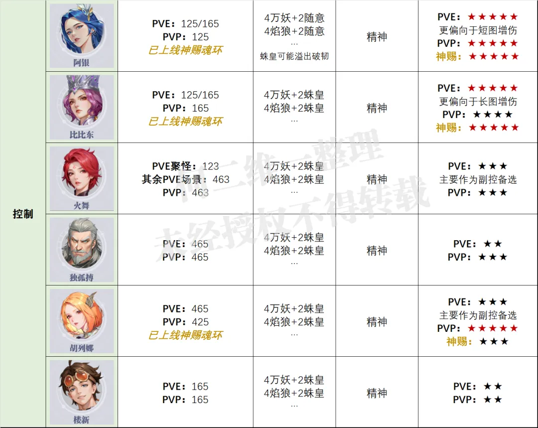 然后便是控制系部分,这次控制系部分的调整并不大,依然是比比东长图,阿银全能的格局......