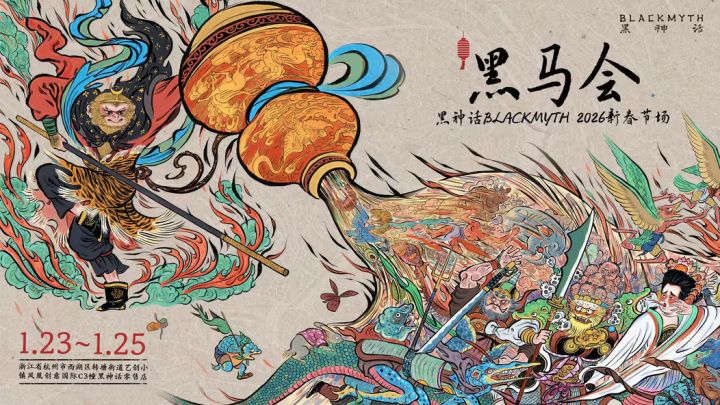1月18日消息,【游戏科学】旗下周边特化品牌公司【黑神话BLACKMYTH】发布动态,宣布黑神话零售店将于杭州线下开展黑神话2026新春节场【黑马会】活动。