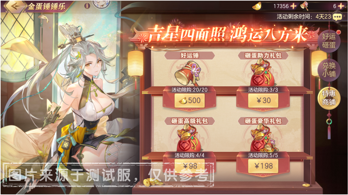 好运锤:包含「好运锤」*1,售价500元宝,活动期间限购20次。