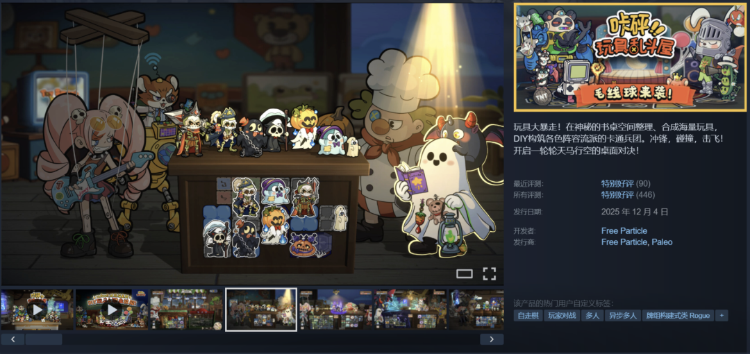 虽然是第一次做独立游戏,但赵小嘉却顺利得有些不可思议。《咔砰!玩具乱斗屋》在2025年年初立项,12月初顺利上线了Steam,卖了几万份,拿到了86%的好评率,游戏推出时也登顶steam首页【热门即将推出】和【人气蹿升的新品】榜单。