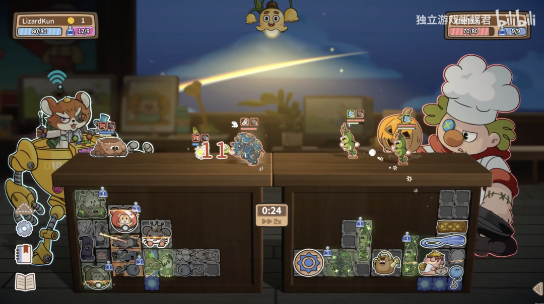 这些「吹水」在一次次的聚餐中变得越来越具体。他们聊起《背包乱斗》或《小动物自走棋》,觉得很多游戏的流派构筑最终表现为抽象的属性叠加,克制和反克制属性的对弈。他们就想,为什么不能用更直接、更可视化的方式,去表现战斗的乐趣呢?