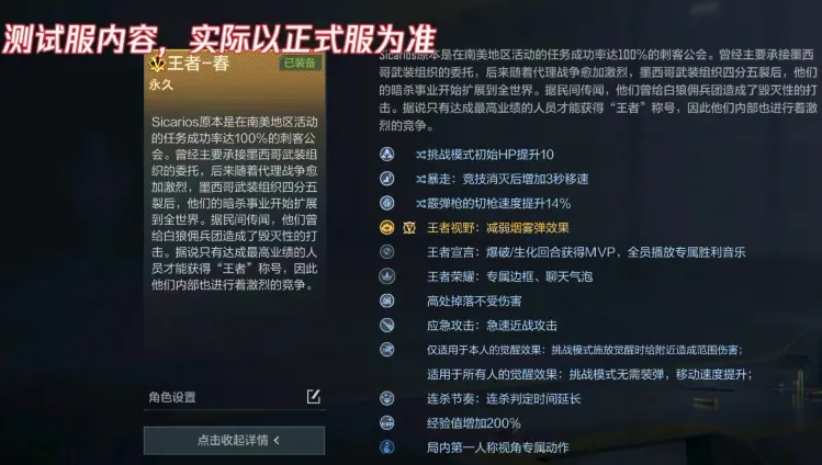 哈喽CFer们大家好,喜欢王者角色的看过来,全新的王者-春已经上架体验服啦,今天火线姐给大家详细介绍下王者-春,一起来看看有哪些专属技能吧。