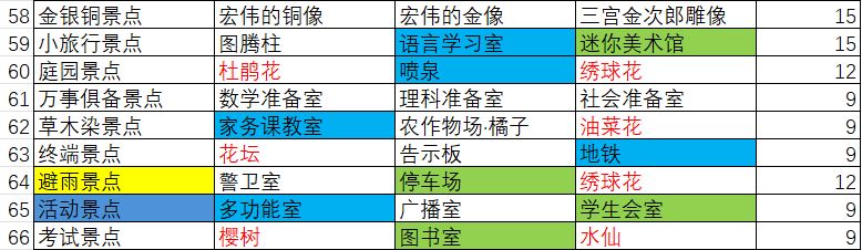 口袋学院物语3景点网络图和文字版景点列表