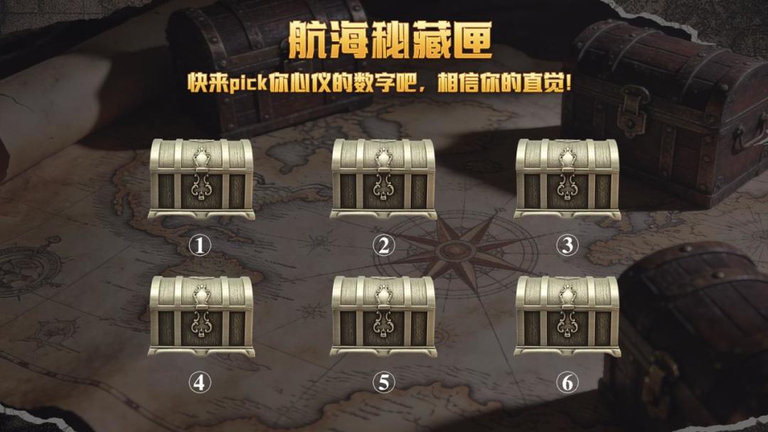 我们准备了6种标有不同数字的航海秘藏匣,每个数字对应一份随机实物礼品!