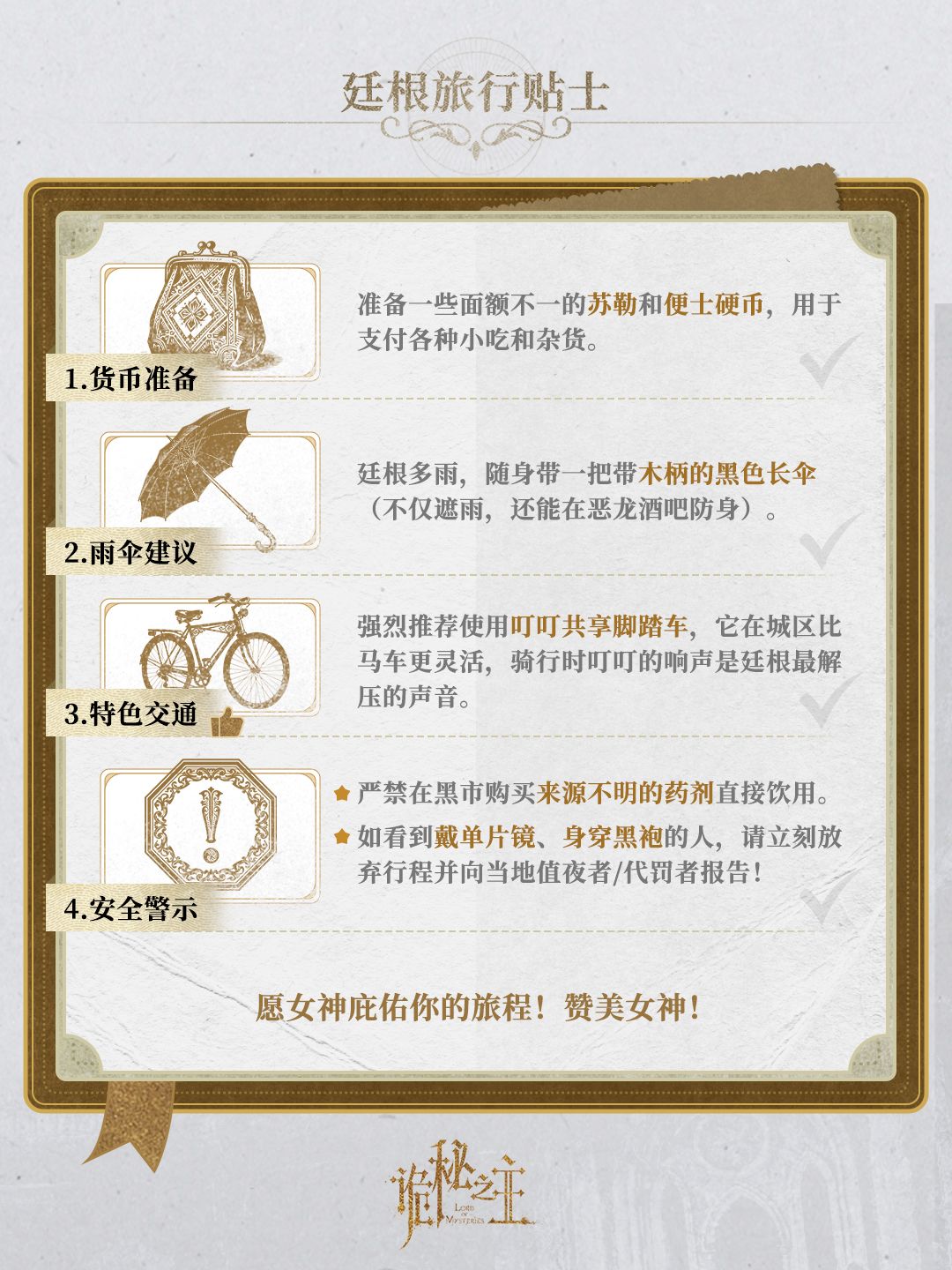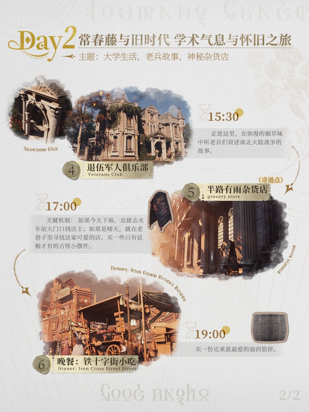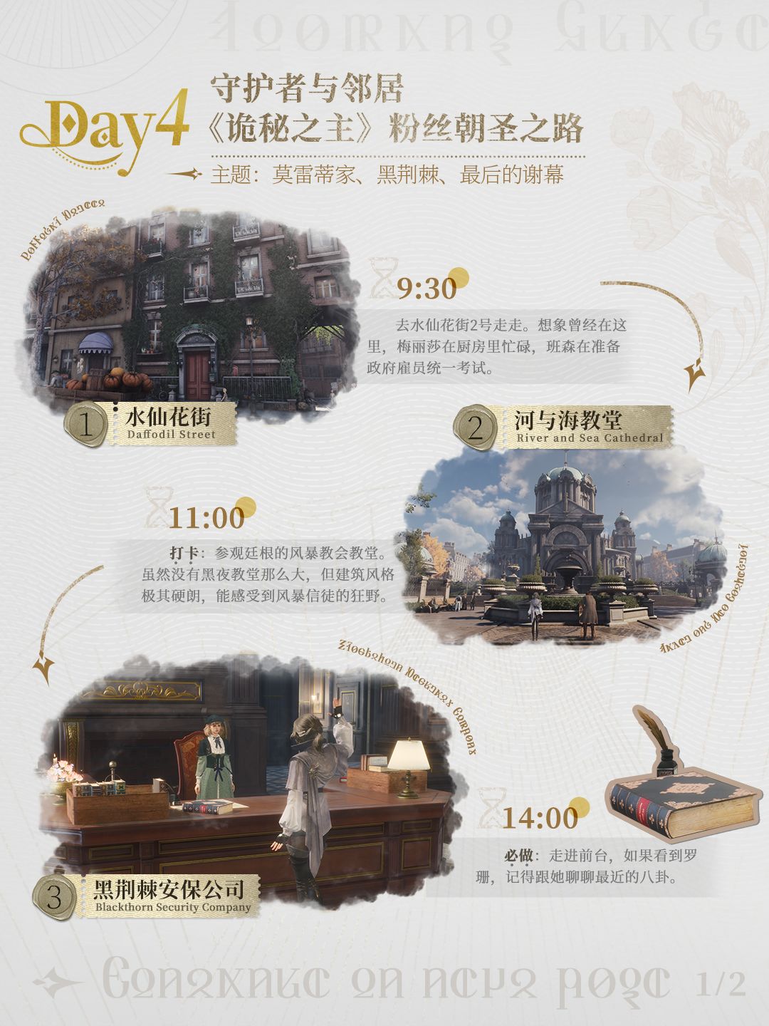 体验项目:水仙花街、 海与河教堂、黑荆棘安保公占卜家俱乐部、拉斐尔墓园