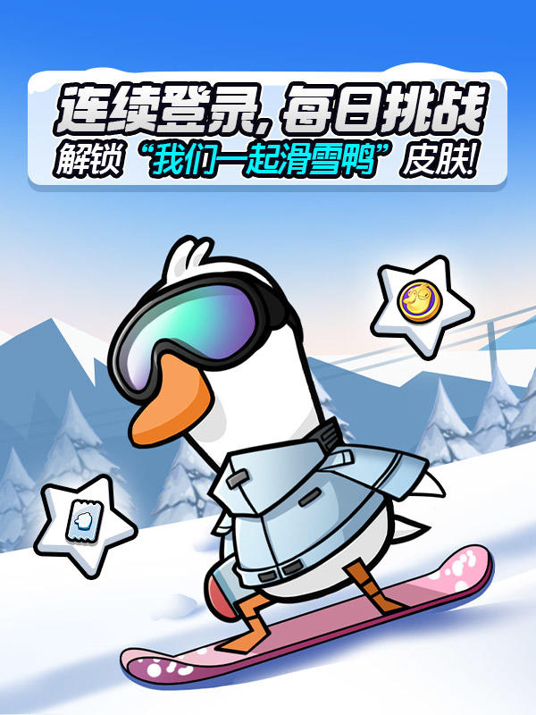 这个冬天,潮流鹅们开板了吗?鹅这套单板穿搭带派不连续登录,每日挑战,解锁「我们一起滑雪鸭」皮肤!