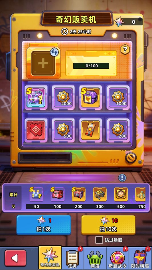 全新活动奇幻贩卖机现已上线,完成活动任务即可获得100+抽,限时兑换全新战术技能以及稀有道具资源,累计抽奖次数还可以领取稀有卡包、战术技能、营地装饰等精彩好礼。