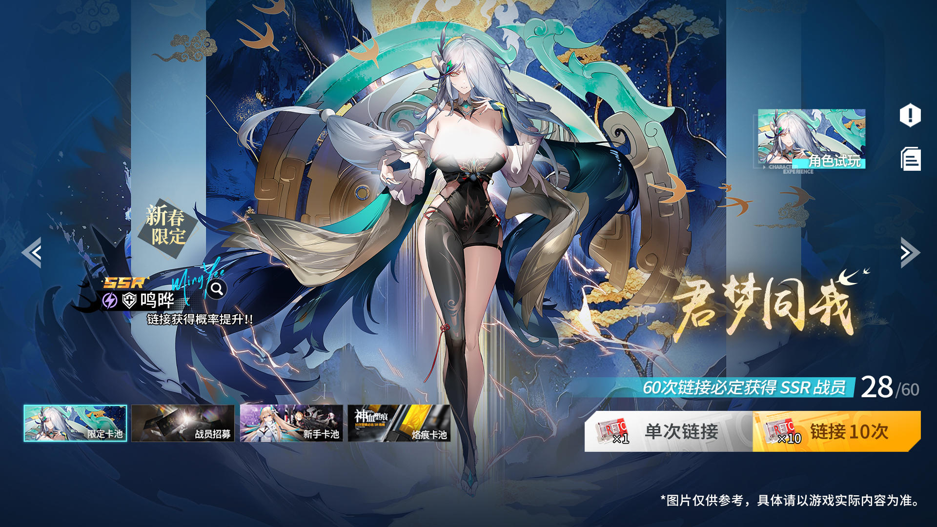 2. 「君梦同我」链接卡池开启, 「新春限定·鸣晔」链接概率提升,累计180 次链接必出该角色;