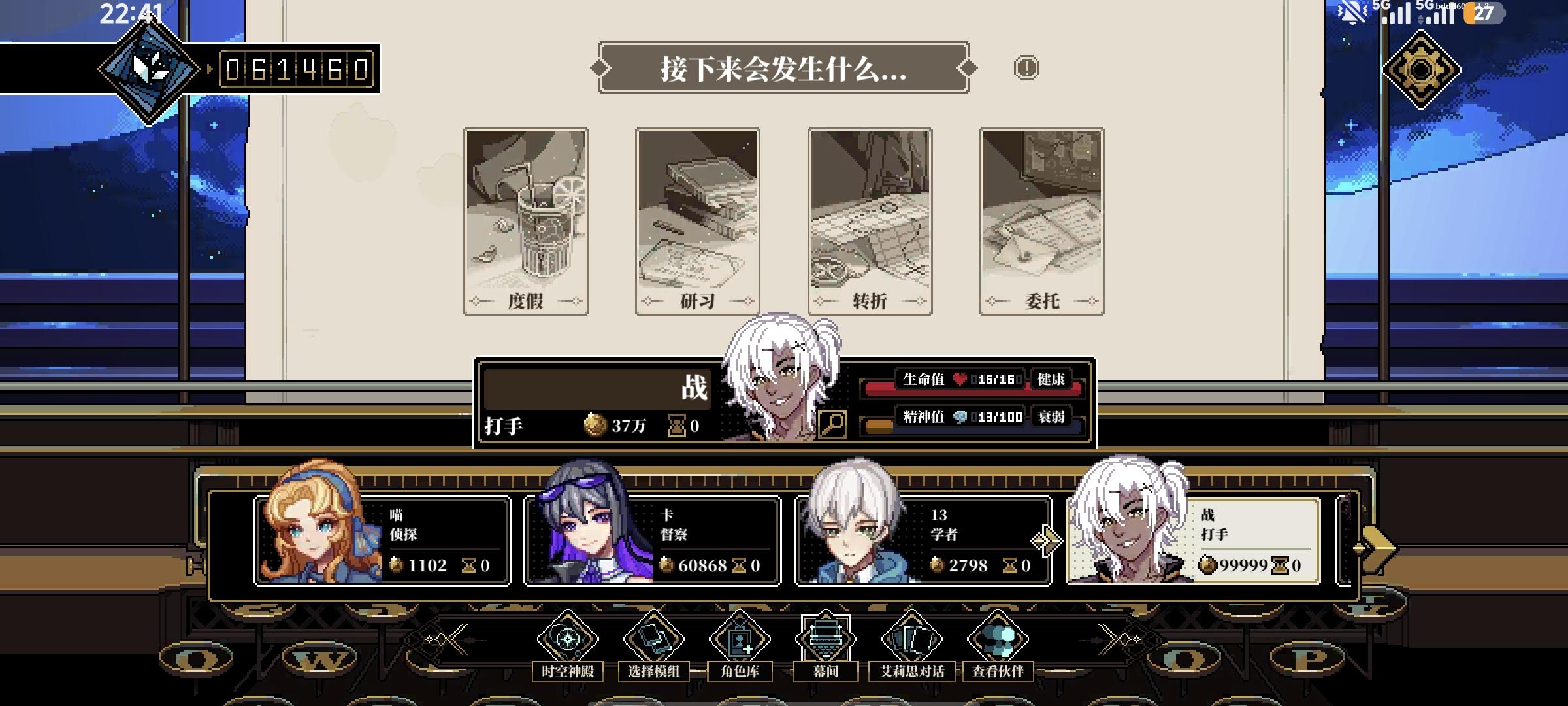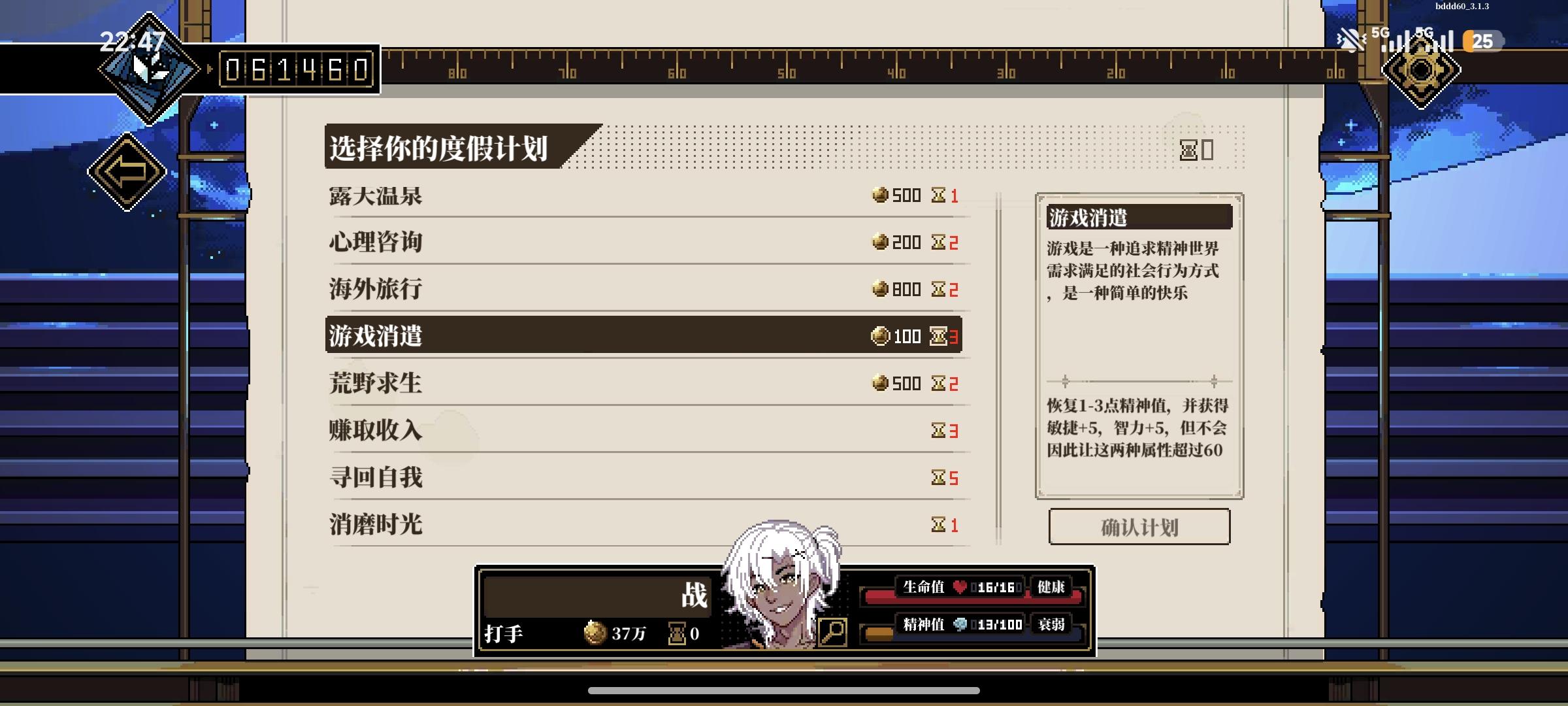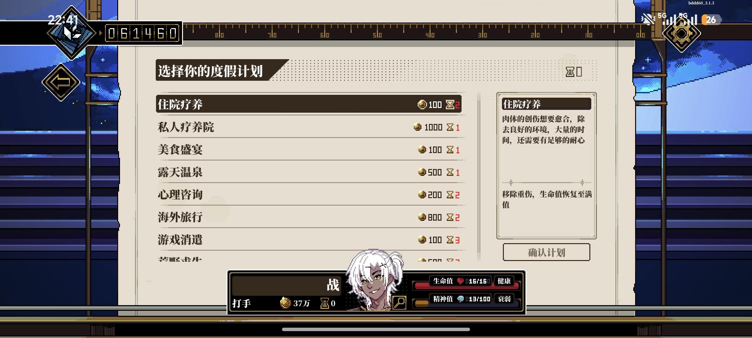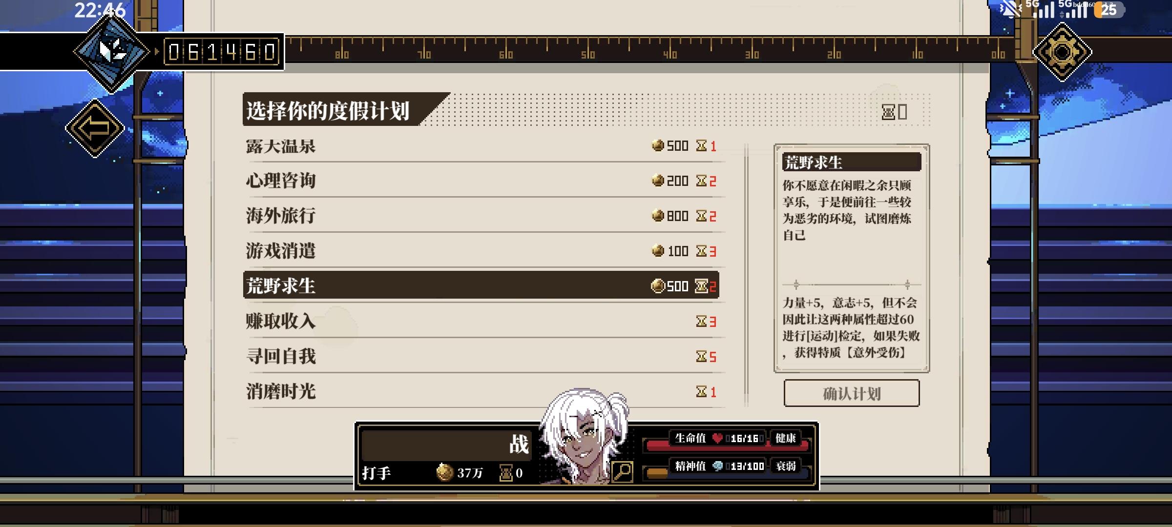 度假可以回血,也可以在这里提升属性,不过不能超60