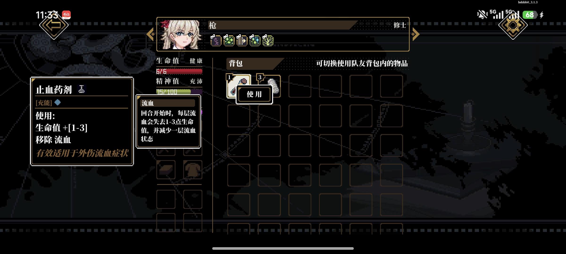 这个按钮可以,在战斗中使用物品,包括丢攻击类道具和用药品,一回合一个人只能使用一次