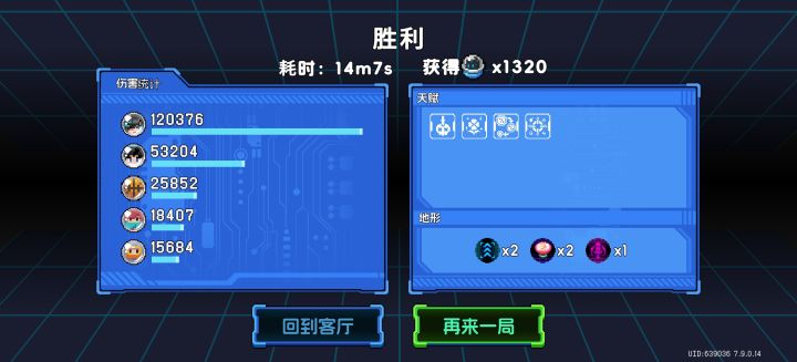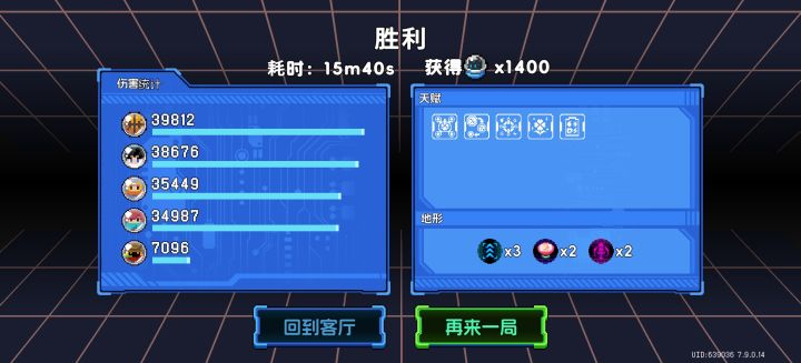 回到元气弹游戏本身,现有的通关build一般就是侠客行高伤流,元素连锁持续伤害流,工程师警长召唤流。通关不是什么难事,但我发现我大部分的通关奖励都在1200~1300活动币左右。最后多次通关后发现,只要能通关,大家的杀敌数,获取货币数这类属性大抵是差不多的。但是激活更多的羁绊buff能提高我们的结算奖励(哪怕该羁绊buff没有升级到2阶甚至是更高阶,但同样羁绊buff数量,高阶buff越多似乎奖励也越高)只要激活了,激活的数量越多,就能获得更多活动币。(天赋数不影响活动币结算,我尝试过少获取天赋或者获取更多的彩色金色天赋,都没有影响)